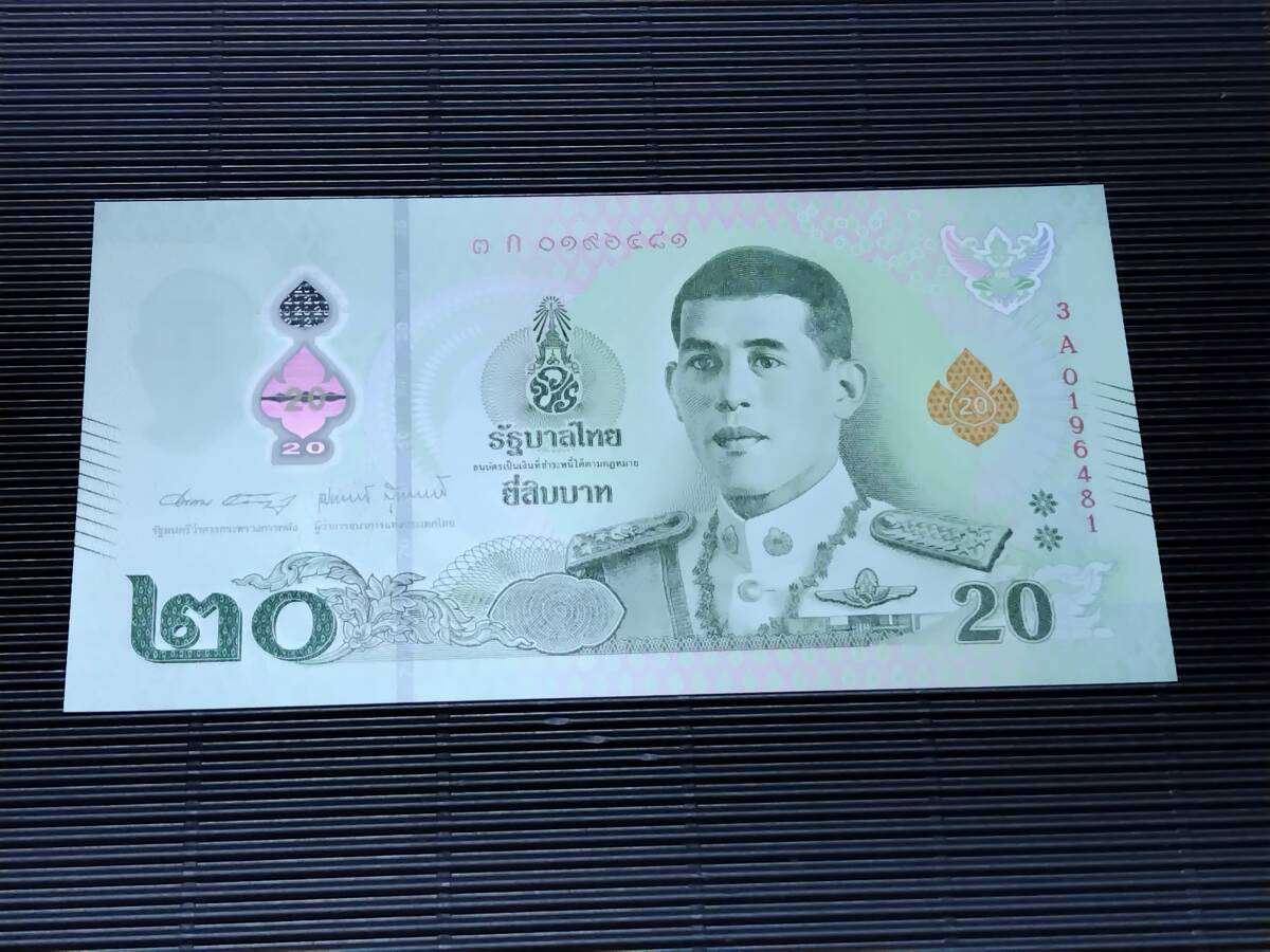 タイ王国 20 Baht札 ポリマー紙幣 コレクション向きのピン札 ND(2022年) 未使用 p-W142a #3A 0196483
