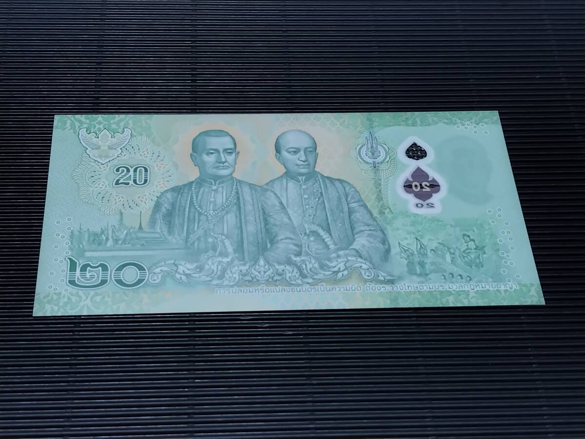 タイ王国 20 Baht札  ポリマー紙幣 コレクション向きのピン札  ND(2022年) 未使用   p-W142a #3A 0196483
