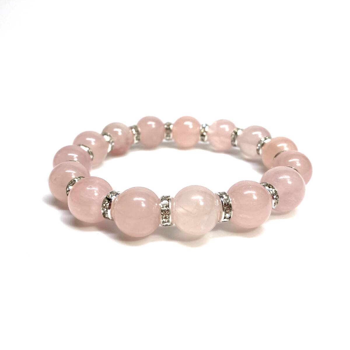 ローズクォーツ パワーストーン ブレスレット 12mm 天然石ブレス (シルバー) 数珠ブレス メンズ・レディース 男性 女性 幸運 開運 浄化