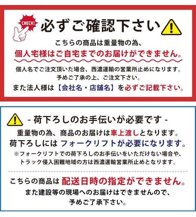 商品詳細をよく確認した上でご注文ください。 サイズ違い・イメージ違いなどによる商品の返品・交換は一切できかねますので予めご了承くださいませ。 商品到着後、7日以内に状態・動作の確認をお願いします。 ■商品破損 外箱の損傷・梱包の破れ等がある場合は運送業者にご連絡ください。 (運送業者より代品依頼があり次第、迅速に交換品を手配します。) ■初期不良・不足品 不良の状態が目視で確認可能な場合は写真をいただけますと幸いです。 |