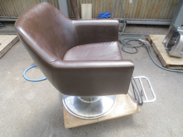 | スタイリングチェア/ブラウン・卵型/クッション分離式/上下昇降/合皮/大廣/中古即決品/★ | |