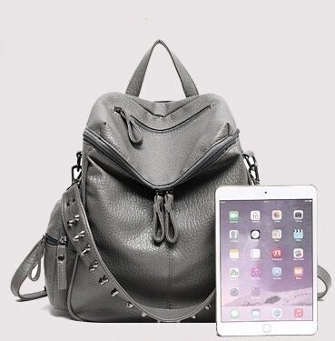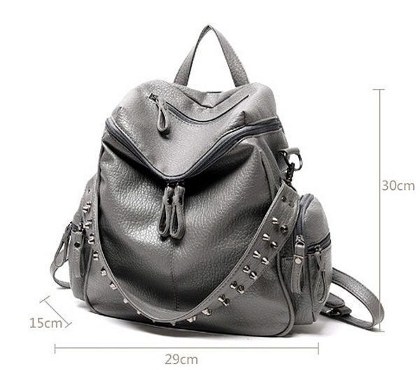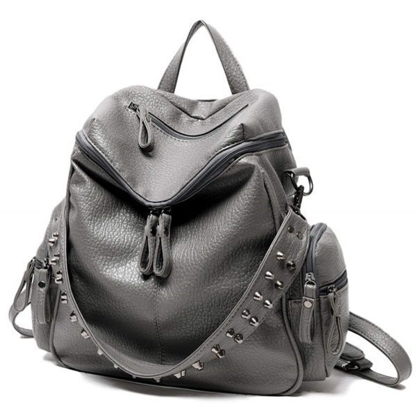 ご覧いただきましてありがとうございます。 ※こちらのカラーはグレーになります。 リュックサック スタッズ ショルダーバッグ 2way PUレザー 斜め掛け レディース グレー 送料無料