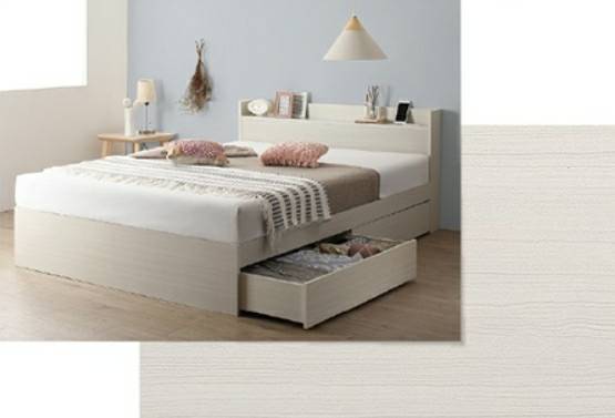 マットレス付き【アウトレット品】セミダブル・Newデザイン2杯収納コンセント付きベッド・ニュアンスホワイト 8-9