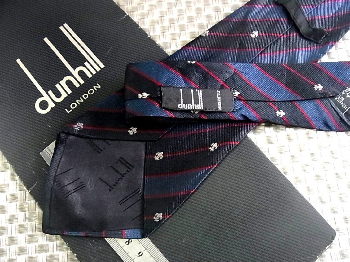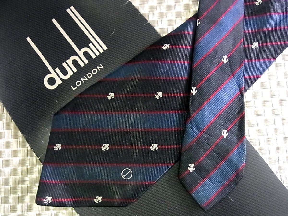 【在庫処分セール】●特売●FK9599W●ダンヒル【百合の紋章 ストライプ dロゴ 柄】ネクタイ●