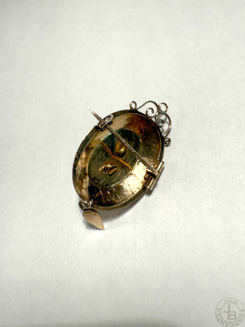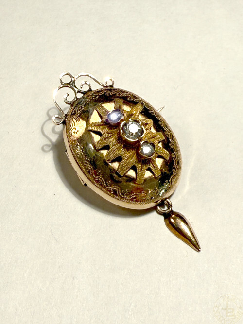 上下はローズカットになっています。石座の周りは細かくエンジンターンで模様が彫られています。楕円形のふち部分もエンジンターンや波型に模様が 細かく入っていたり凝っています。