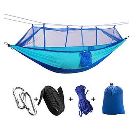 送料無料 匿名  蚊帳付き 虫よけ ハンモック 2人用 耐荷重200kg ブルー