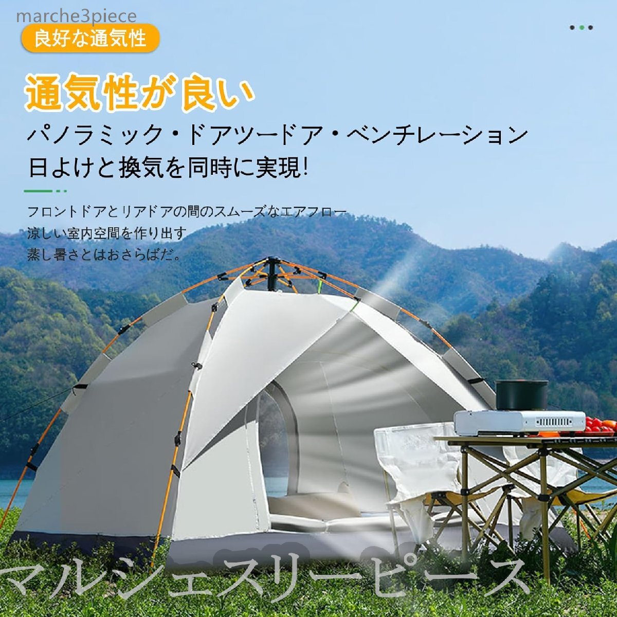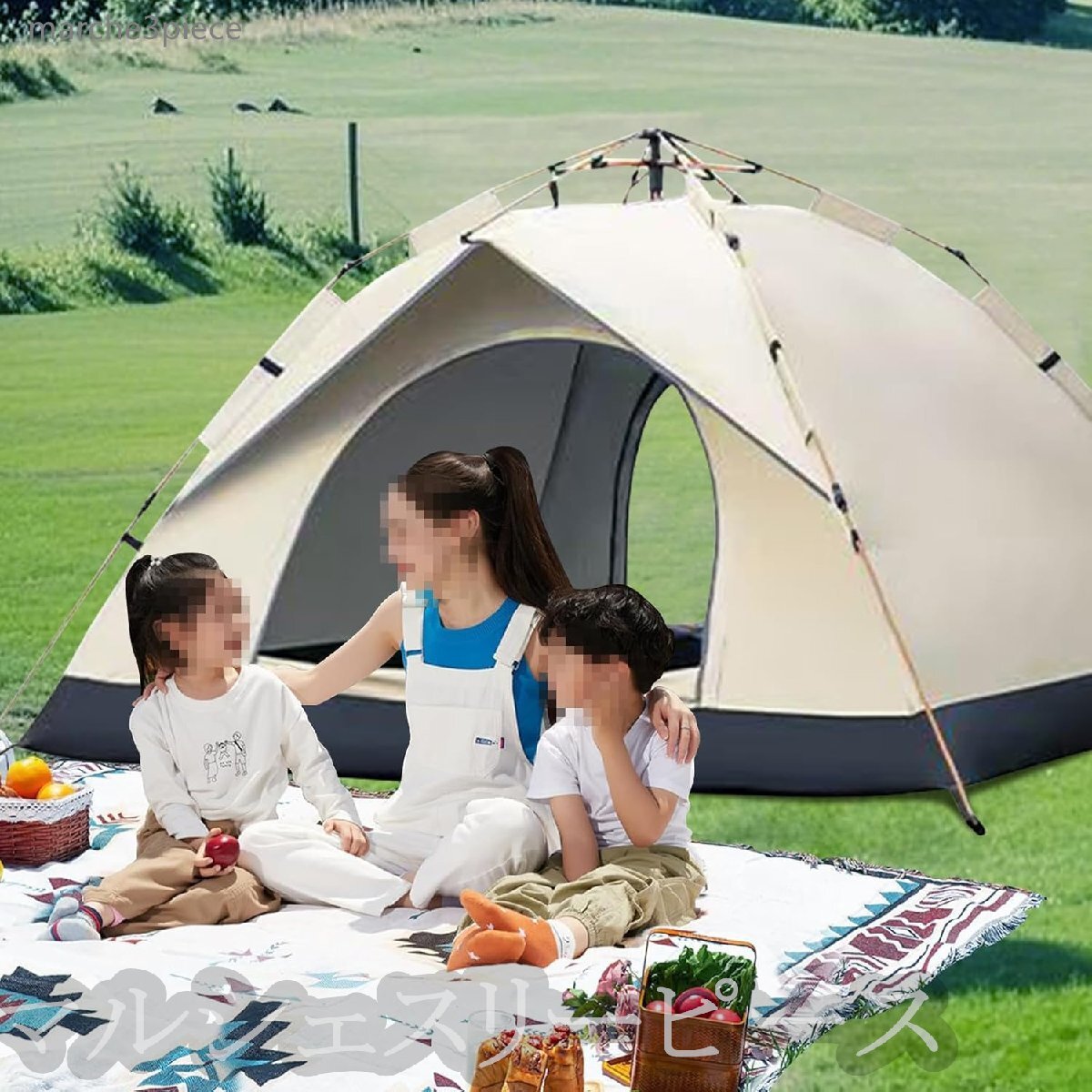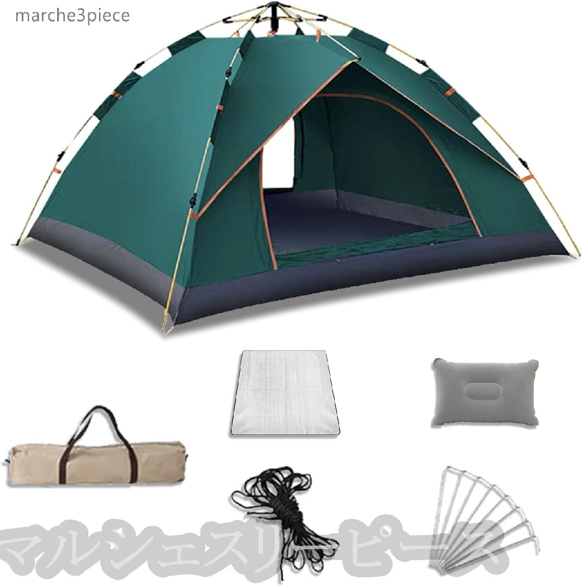 ワンタッチテント 3-4人用シルバーコーティング 自動開閉5秒設営UV高遮光防風防水耐水圧3000mm 四面メッシュ 超軽収納袋付きグリーン