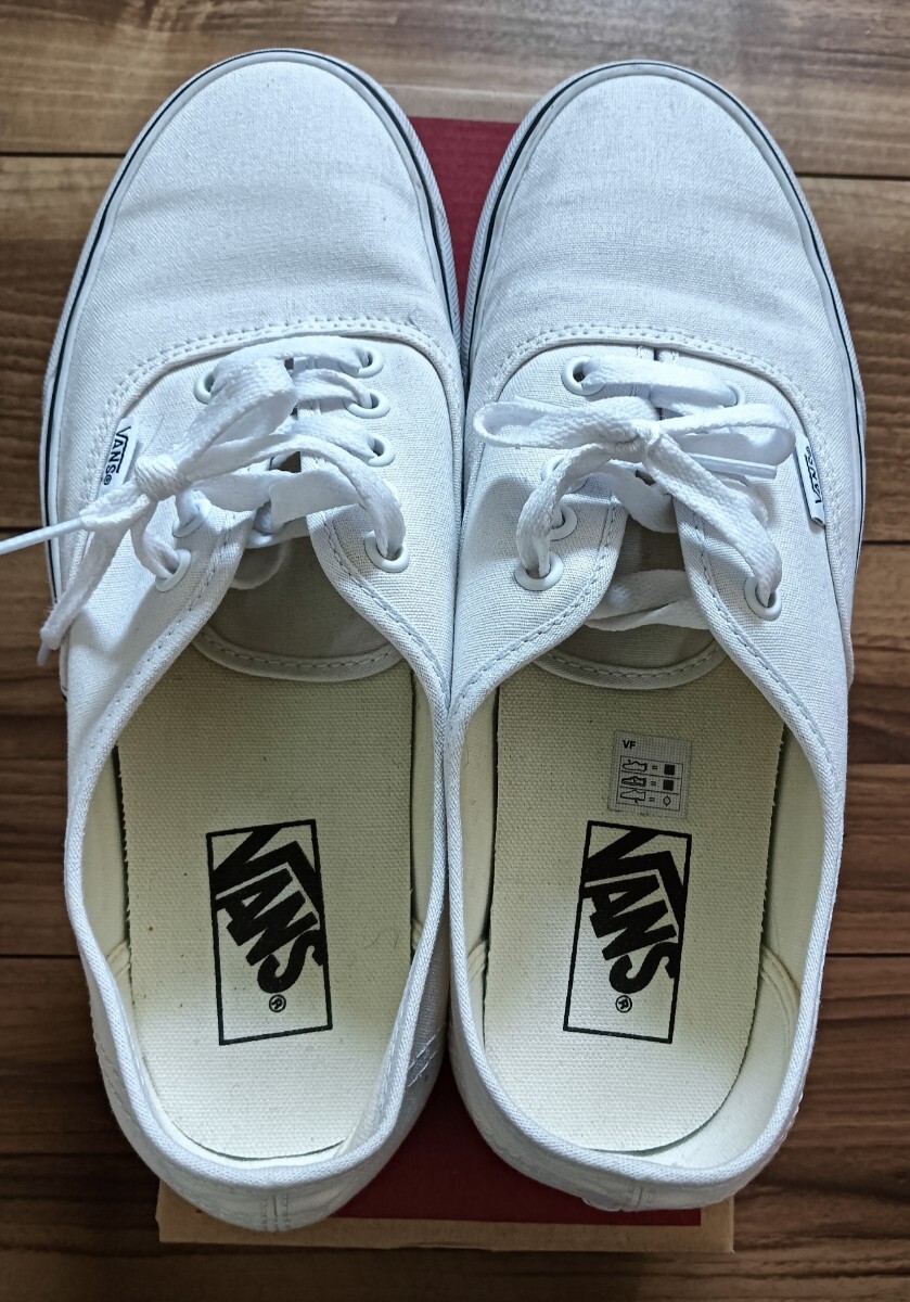 USA企画のVANSオーセンティックになります。サイズ表記は26.5cm、色はセオリークラウドで黒のラインとなります。