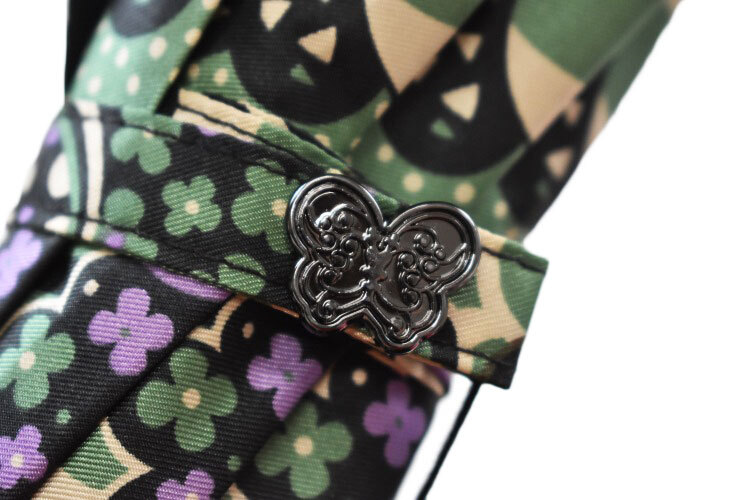 | 商品説明 | フラワープリント パコダスタイル 雨傘。 カラーは黒を主体としてぱっきりとしたモード感が楽しめます。 黒一色の変形持ち手がパコダスタイルとマッチした落ち着いたシックなスタイルの長傘です。 指にやさしいはじきカバー付。 色:ブラック×グリーン×パープル |