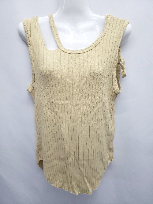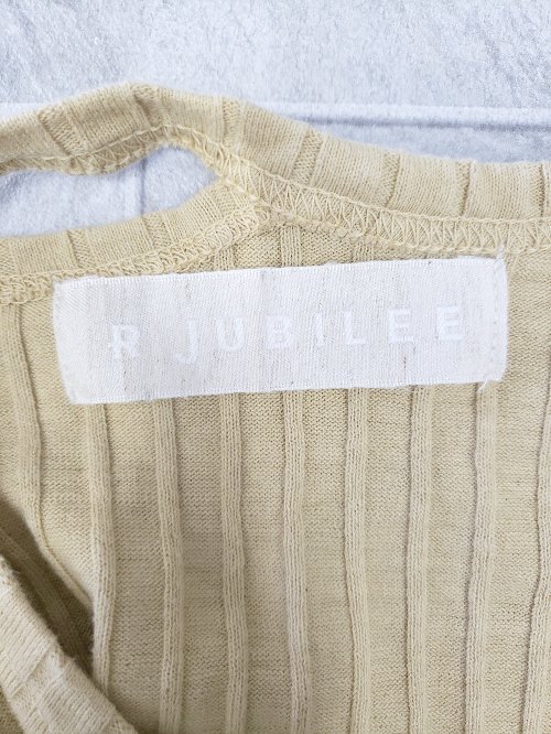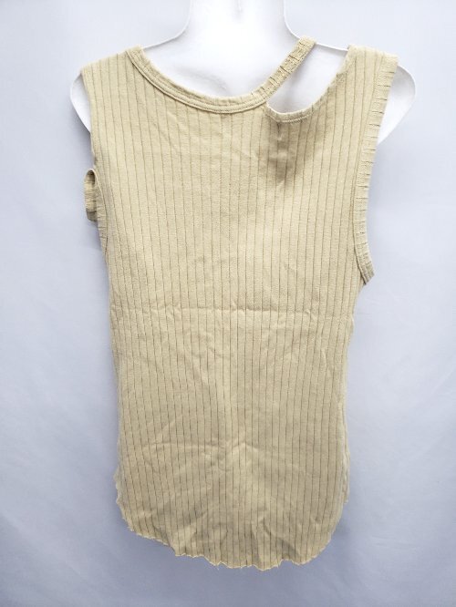 ◇ ⊂ R JUBILEE アール ジュビリー リブ ノースリーブ デザイン タンクトップ サイズF マスタード系 レディース E