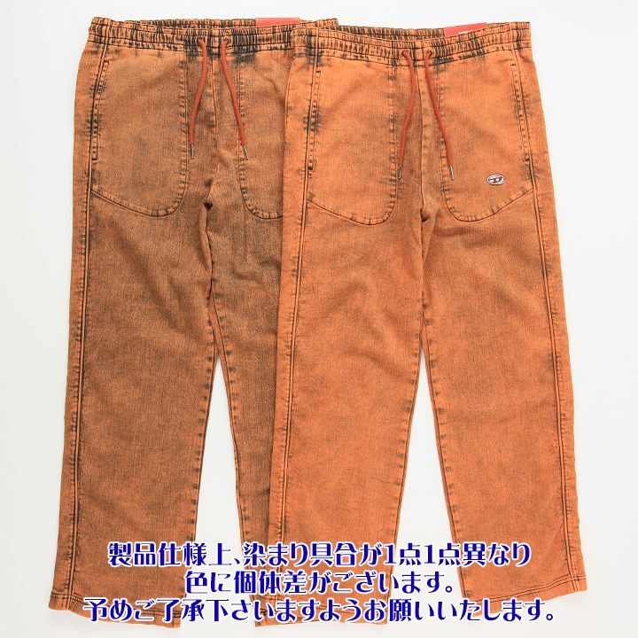 | 【平置き実寸サイズ】※単位cm Wはウエスト、Hはヒップ 【L】(XL相当)W94 H112 ワタリ35 股上36 股下81 裾幅24 【素材】コットン(綿)98% ポリウレタン2% 【生産国】TUNISIA 【ストレッチ】あり 【生地の厚み】一般的な厚み 【仕様】 ・ウエストゴム&ドローコード ・色合いに個体差あり | ![]() |