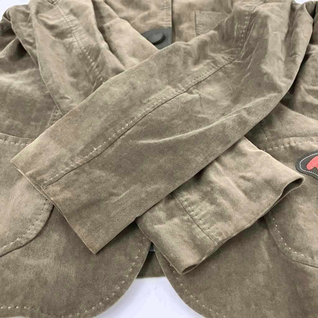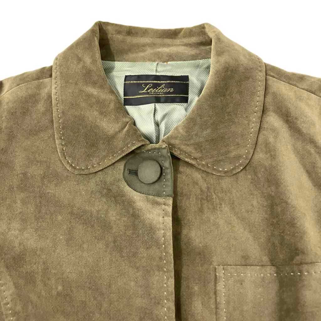 レリアン Leilian tテーラードジャケット ブレザー スエード 刺? カーキ 約M ■GY09 レディース