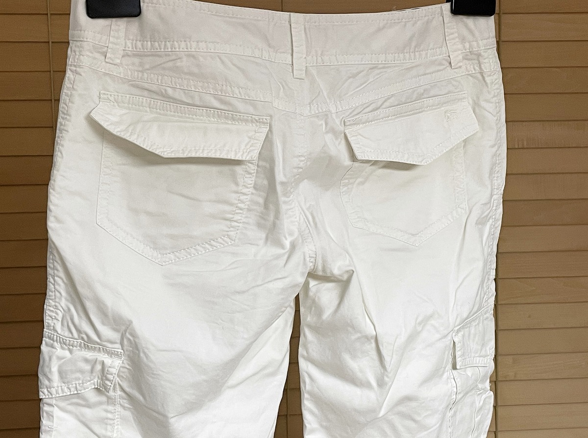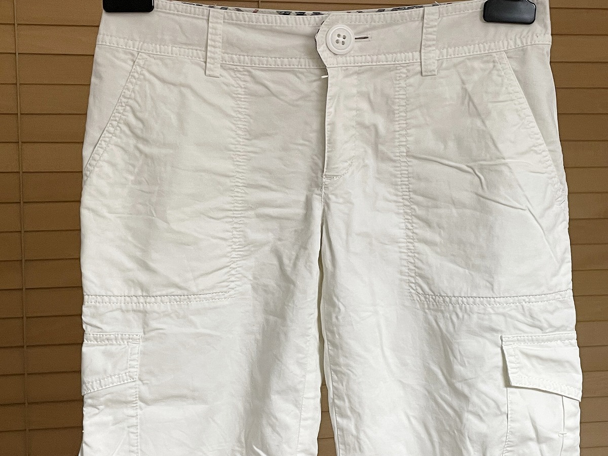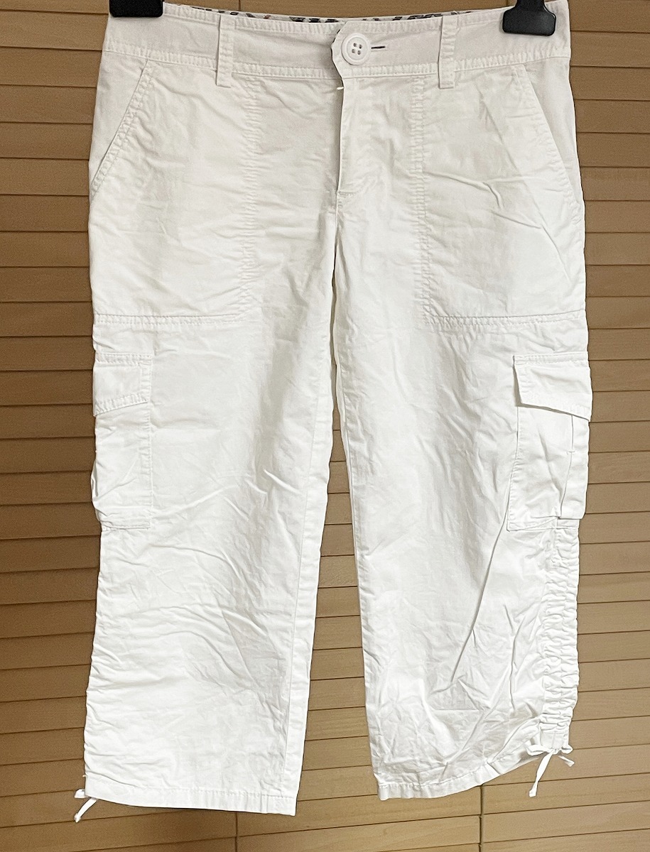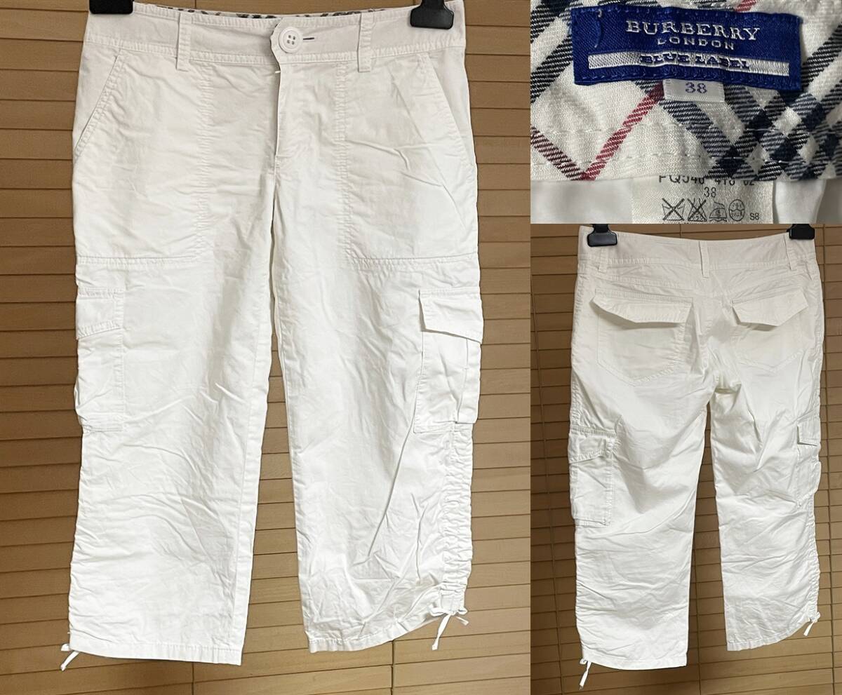 【激安1点のみ 国内正規品】BURBERRY BLUE LABEL バーバリーブルーレーベル ホースマーク刺繍 七分丈 パンツ クロップドパンツ カーゴパンツ 38 (Mサイズ相当) ホワイト FQ546-418-02