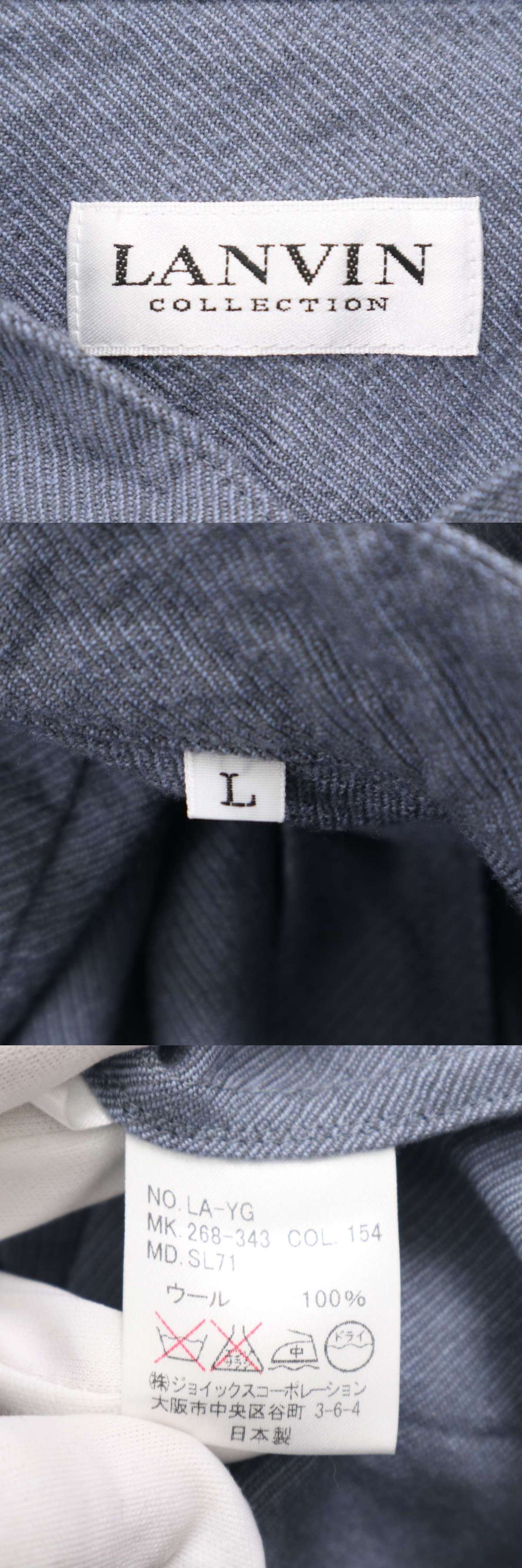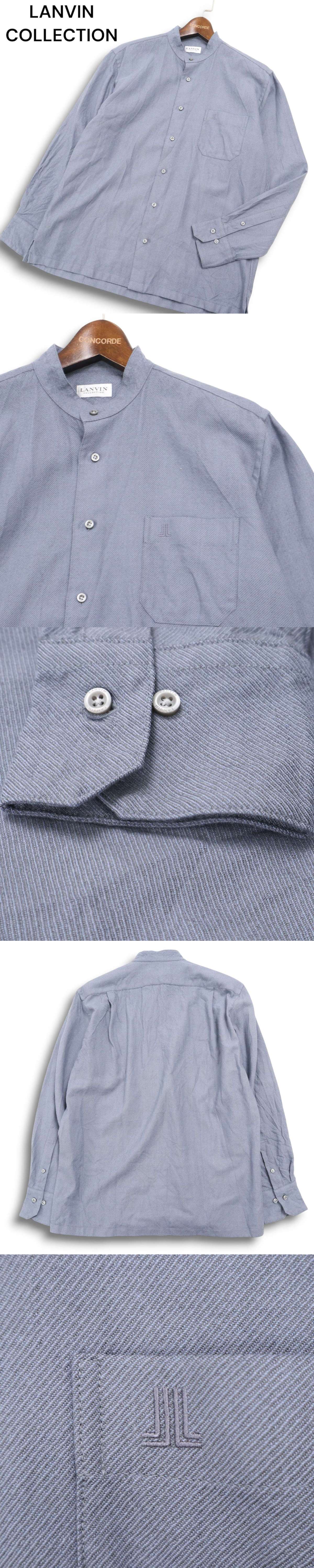 LANVIN COLLECTION ランバン コレクション 秋冬 ロゴ刺繍★ ウール100% 長袖 バンドカラー シャツ Sz.L メンズ 日本製