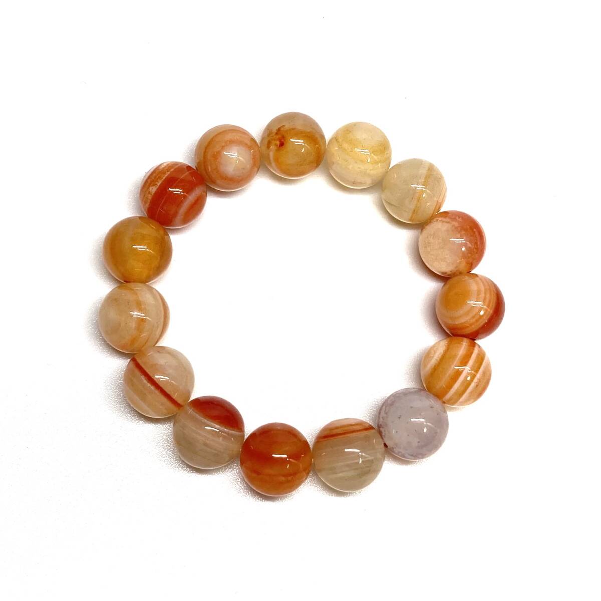こちらは、カーネリアン・サードニクス(レッド天眼石)の14mm玉を使用したパワーストーンブレスレットです。シンプルなデザインですのでどんなコーディネートとも合わせ易いブレスレットです。程よくインパクトがある14mm玉を使用して内周約17cmです。パワーストーンを付けてる方へのプレゼントにもお勧めです。14mmサイズのリクエストが多々ありましたので少量ですが販売しました。気になる方はお早めにどうぞ。