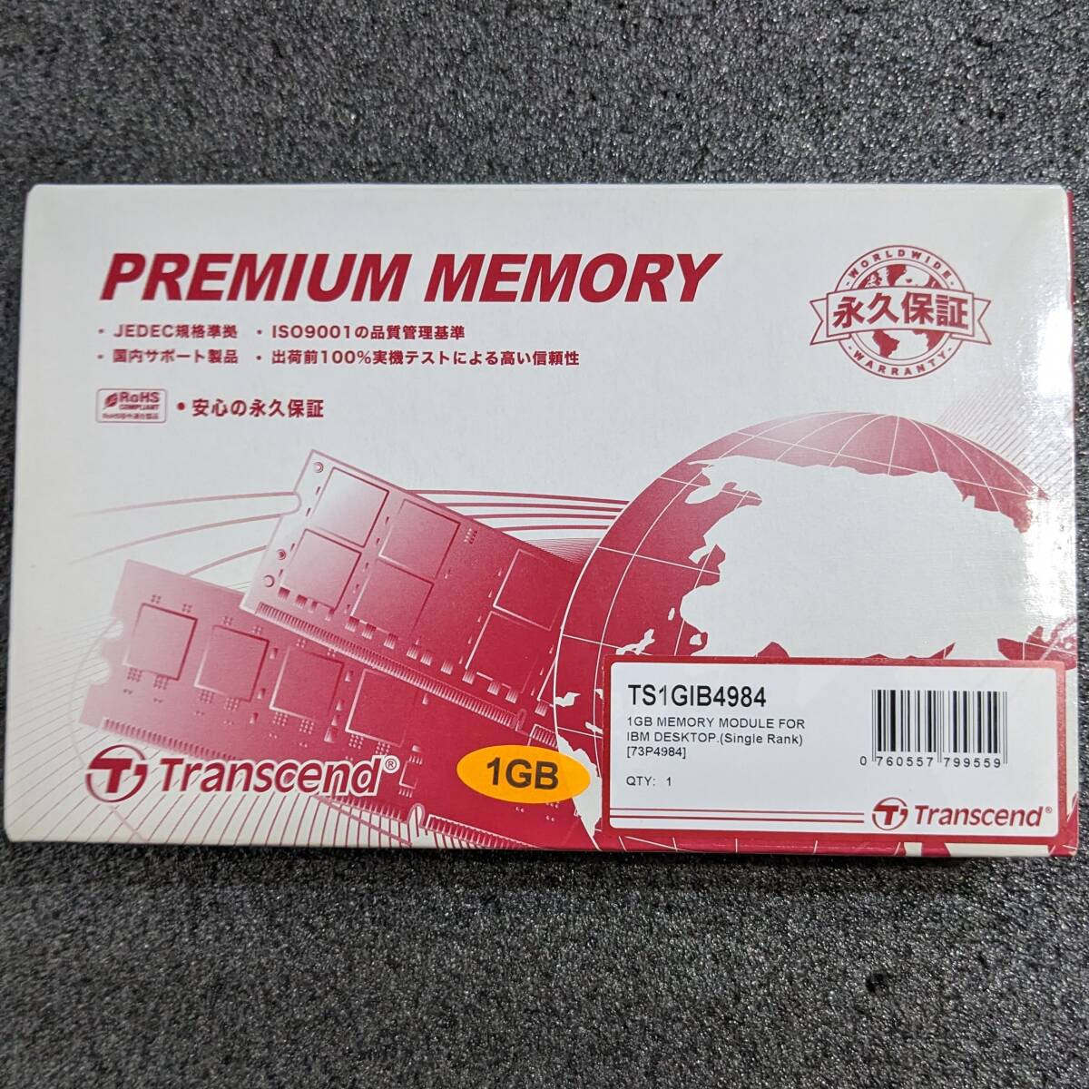 トランセンドのDDR2メモリ(ローハイトモデル)、1GB1枚の未使用品です。