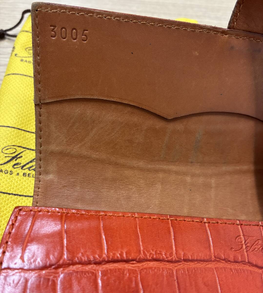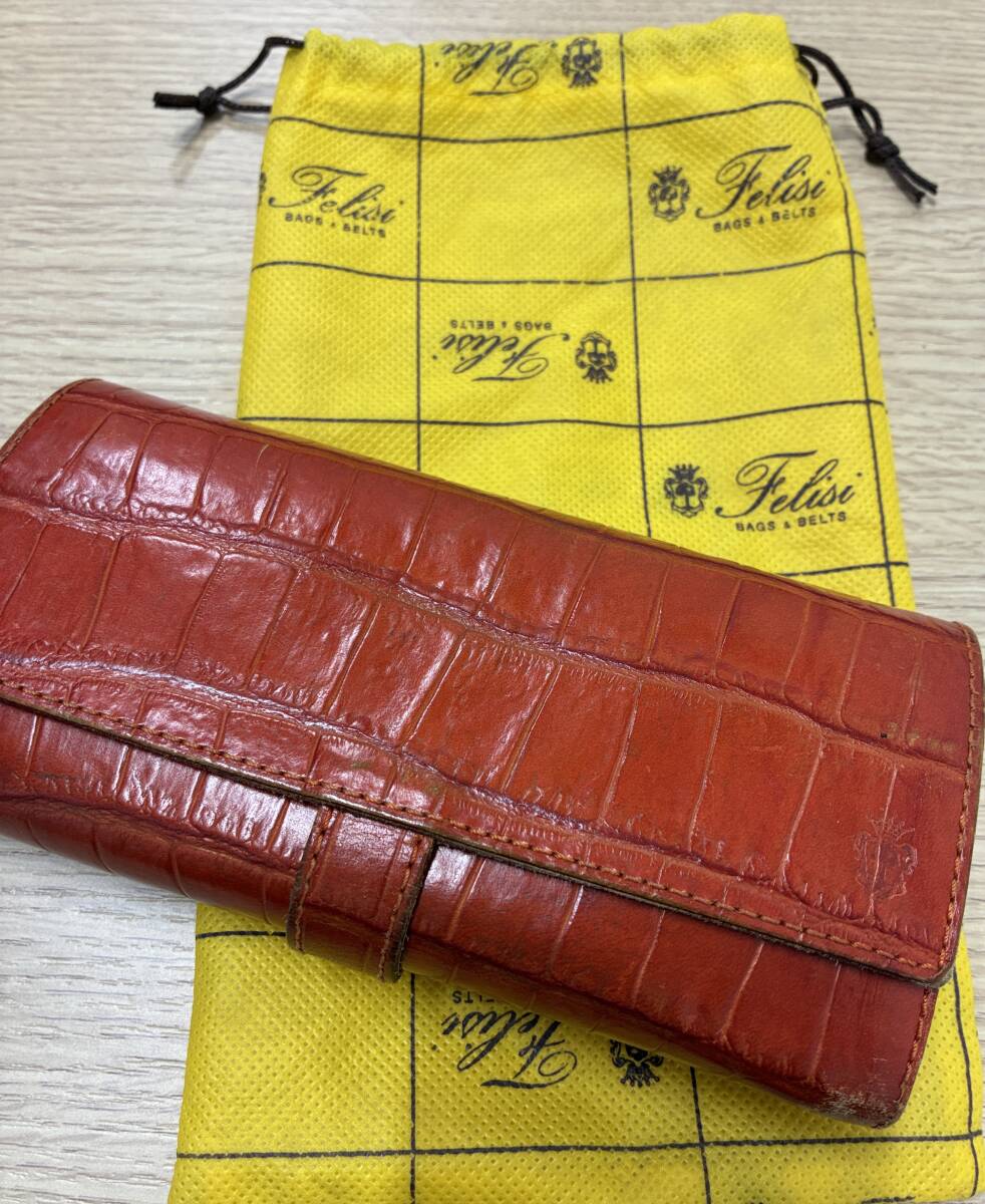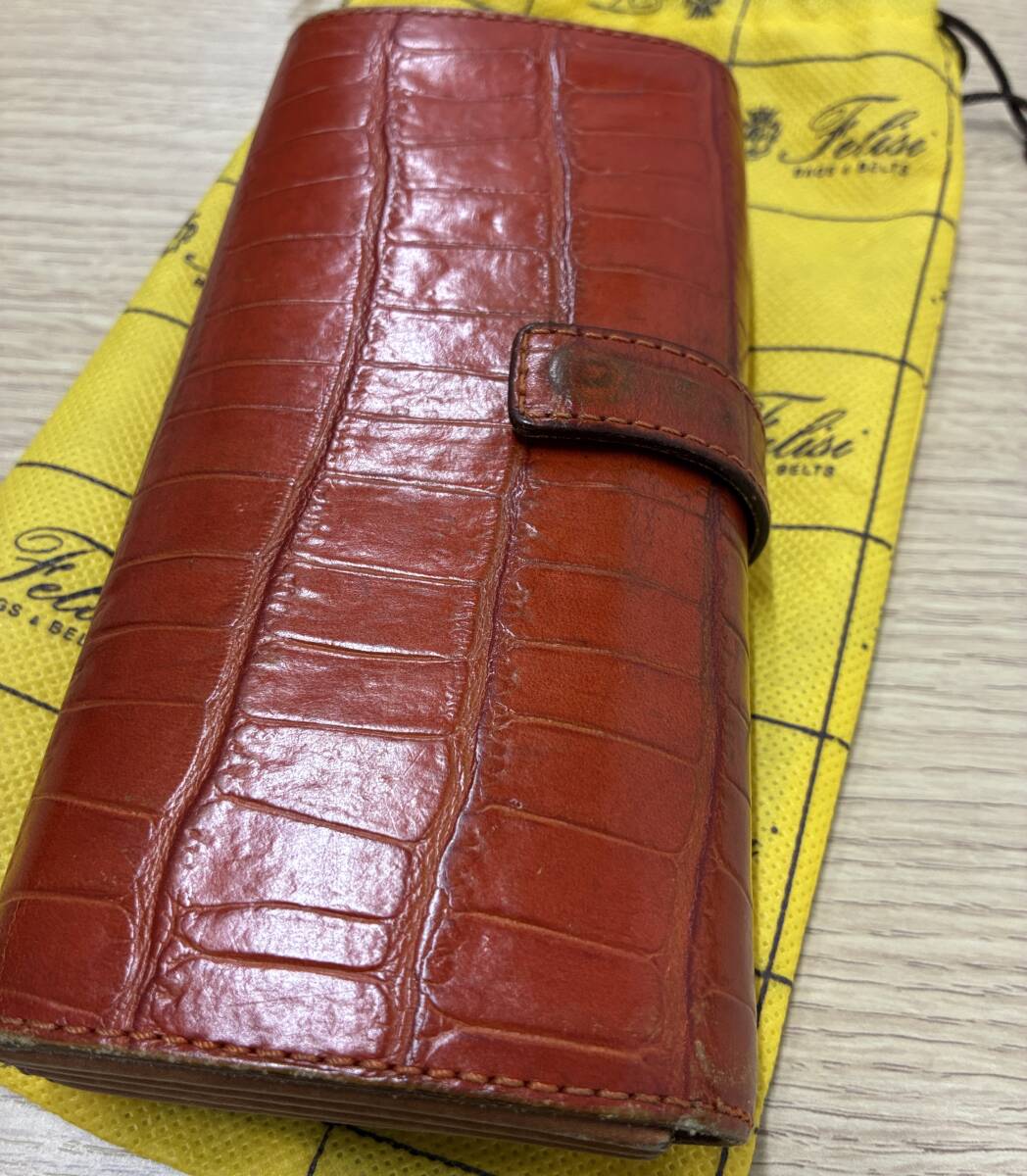 353★Felisi フェリージ 長財布 3005 オレンジ クロコダイル型押しレザー 中古品 |