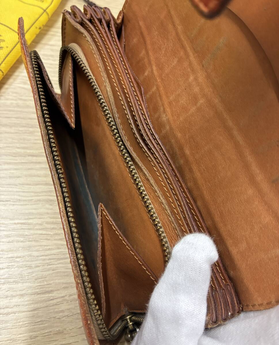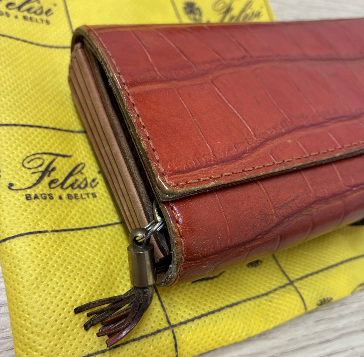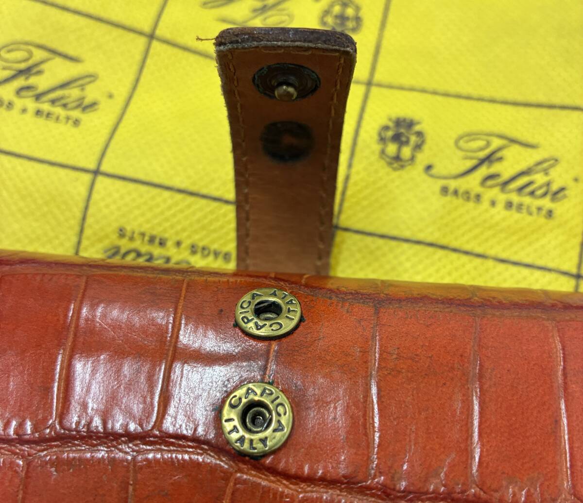 353★Felisi フェリージ 長財布 3005 オレンジ クロコダイル型押しレザー 中古品 |
