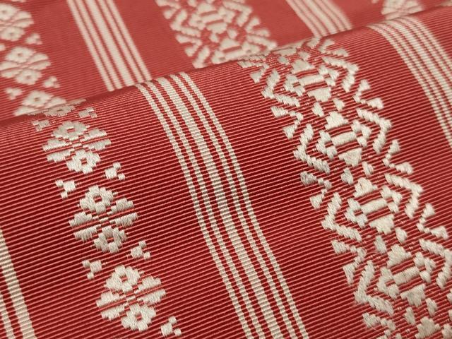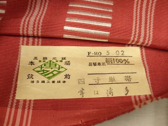 | 【正絹】 詳細に関しましては、画像をご確認ください。 本場筑前博多織は、 福岡県福岡市博多区やその周辺で生産される絹織物です。 仏具のひとつである独鈷、華皿を基にした幾何学模様が織られています。 江戸時代に筑前藩主だった黒田長政が幕府への献上品にしたことから、 博多献上、献上博多とも呼ばれます。 横畝が際立って見える経畝織りという織りになっています。 30〜60本の細い経糸を使うため、こしやはりがあり、 地合が硬く、光沢感があります。 きちんと締まり、くずれにくい、締めやすい帯といわれています。 大変上質な逸品になります。 お安く出品致しますので、是非この機会にいかがでしょうか?