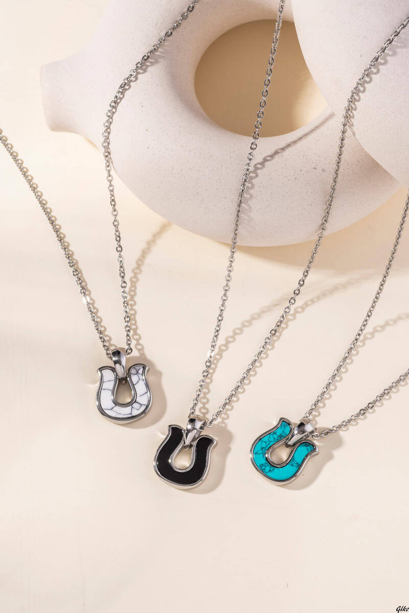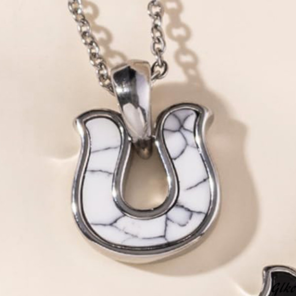【天然石を用いた個性的で高級感あるデザイン】 馬蹄アクセサリー 天然石 ステンレス アレルギー対応 個性派 唯一無二 ハウライト