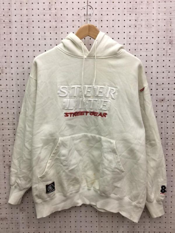 STEER LITE STREET WEAR オールド 00s HIPHOP ヒップホップ ロゴ刺繍 スウェット プルオーバー パーカー メンズ 白 L
