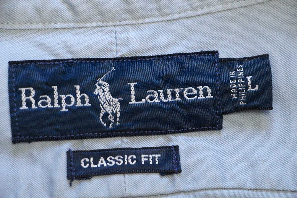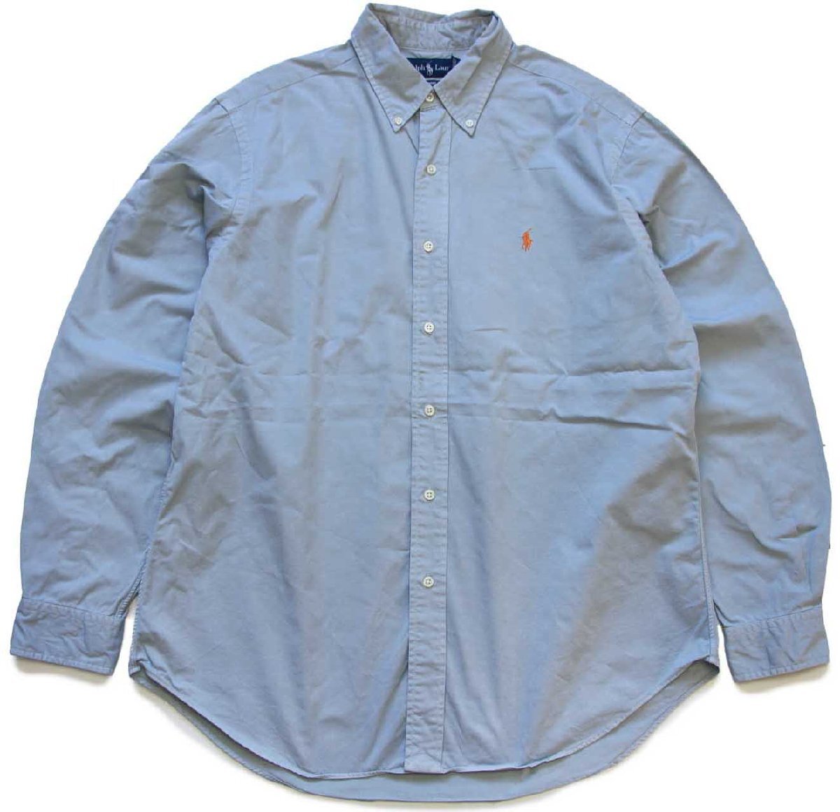 ★00s ラルフローレン CLASSIC FIT ワンポイント ボタンダウン コットンシャツ ブルーグレー L★オールド ロゴ刺繍 ビッグサイズ