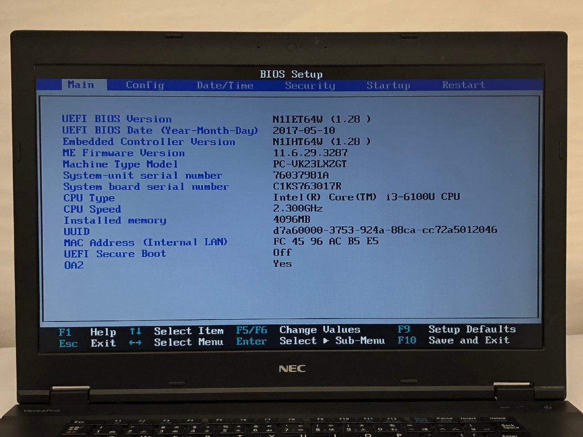 ジャンク/ NEC PC-VK23LXZGT Intel Core i3-6100U メモリ4.1GB ストレージ無し 【K20077】