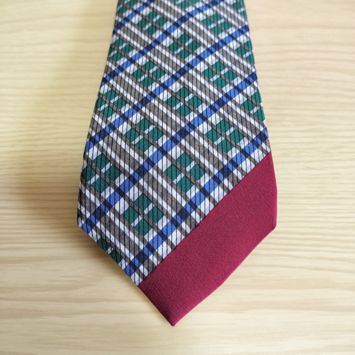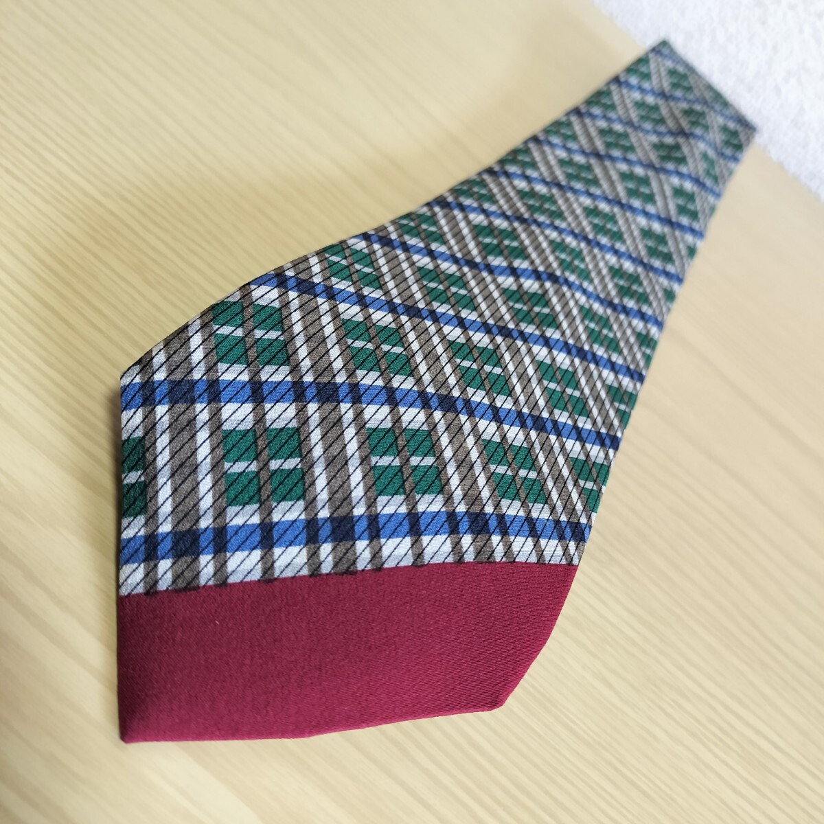 赤紺緑茶シルバー線模様ネクタイ
