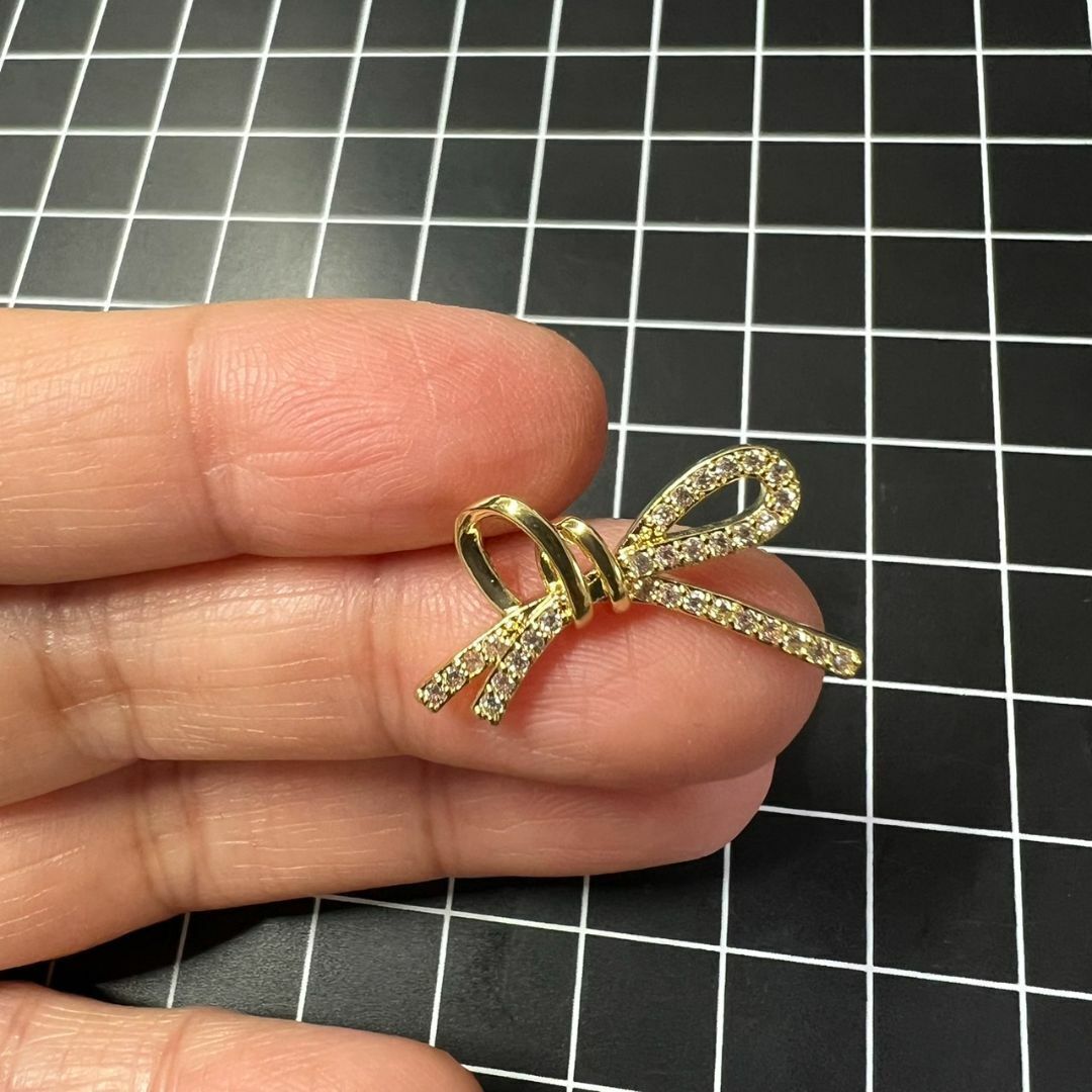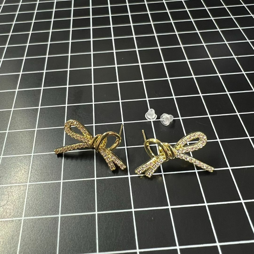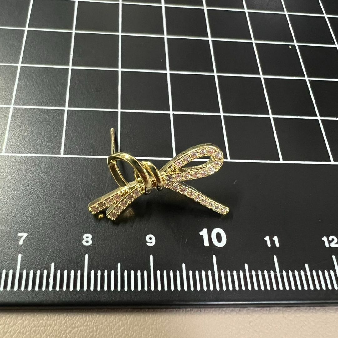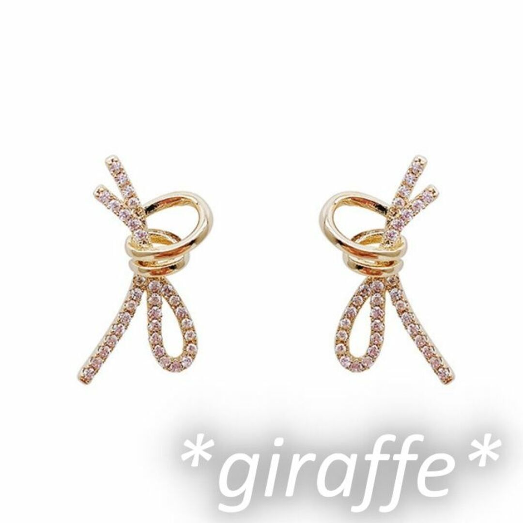 B338 匿名配送 ピアス リボン ジルコニア s925 ゴールド 蝶結び キラキラ スタッドピアス 大きめ 華やか フォーマル 結婚式
