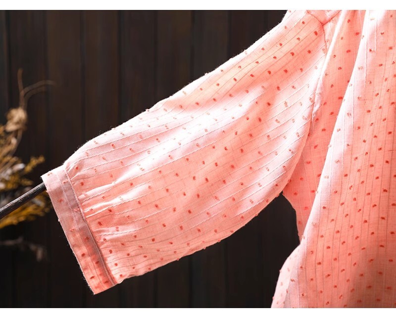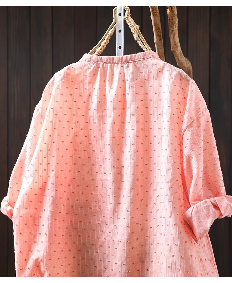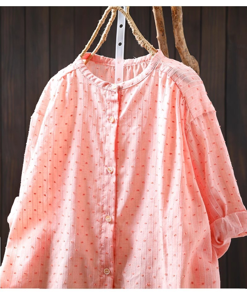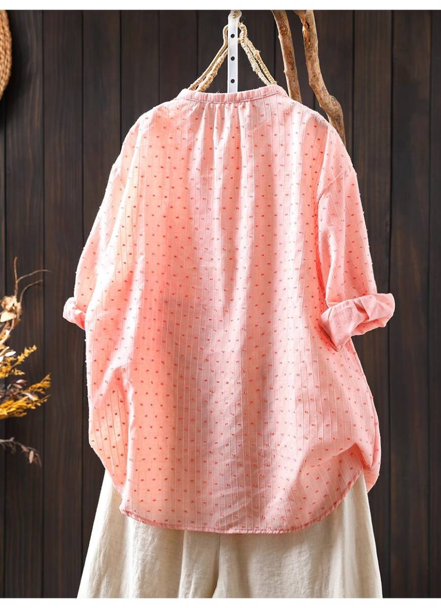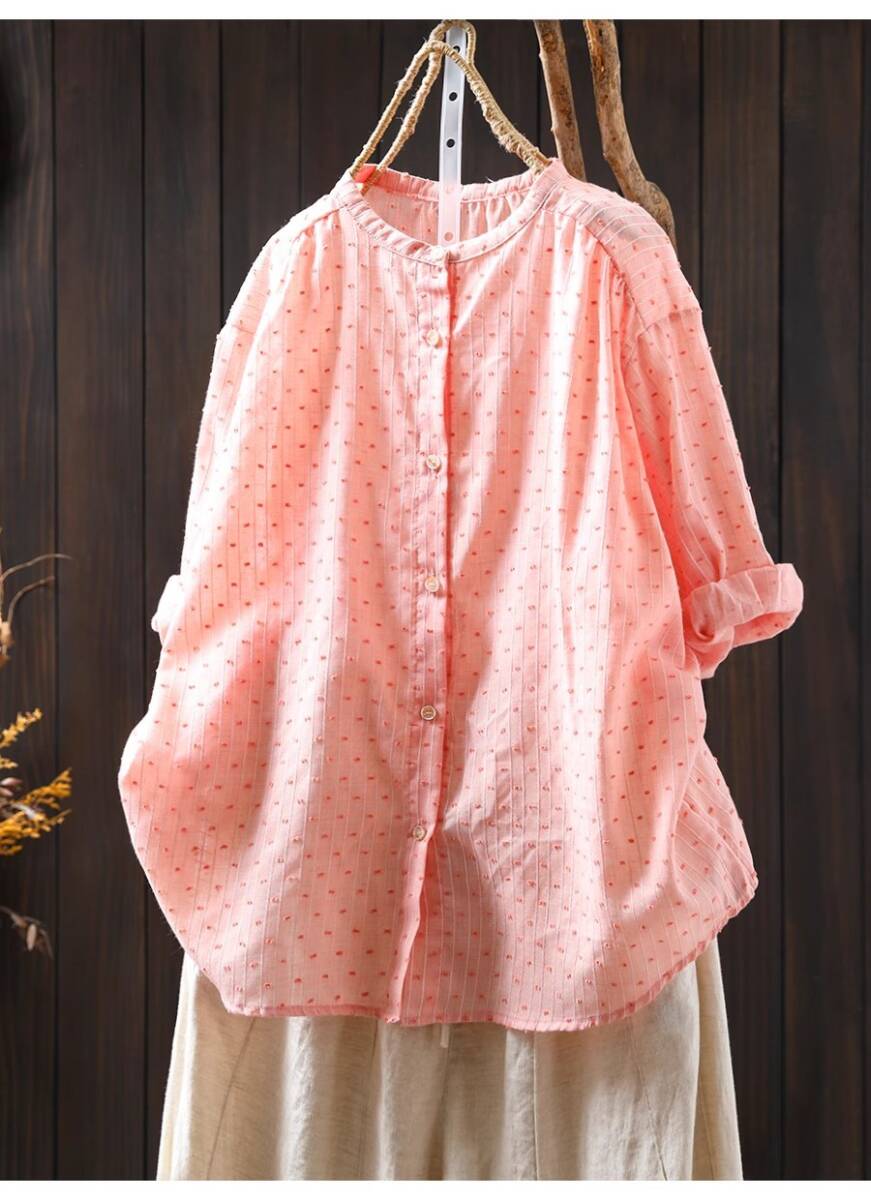 人気ワイシャツ フリーサイズ チュニック トップス 純色 織り込み柄 スタンド襟 綿100% ナチュラル 通気性肌触り抜群 ブルー系
