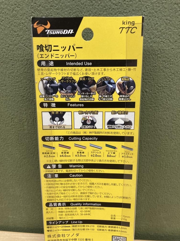 ツノダ ■商品名 喰切ニッパー エンドニッパー ■型番 EN-165S |