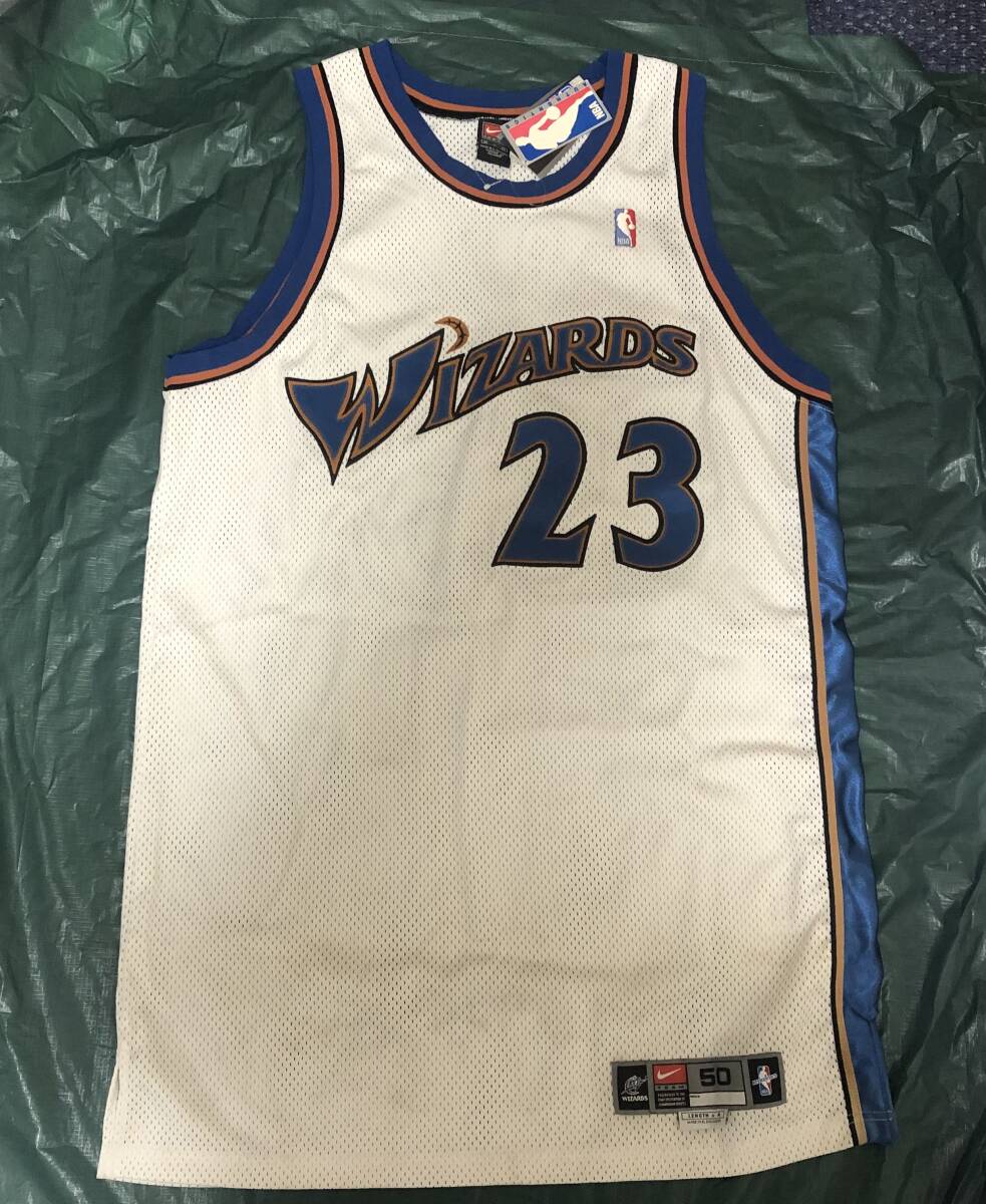 2001/2003の2シーズン現役復帰したマイケル・ジョーダンがワシントン ウィザーズのホームで着用したユニフォームと同じ素材・サイズで作られたプロカットジャージになります。サイズ50のLENGTH4になります。新品タグ付きのNIKE正規品になります。価値の高いジャージのひとつだと思います。ファンの方宜しくお願い致します。