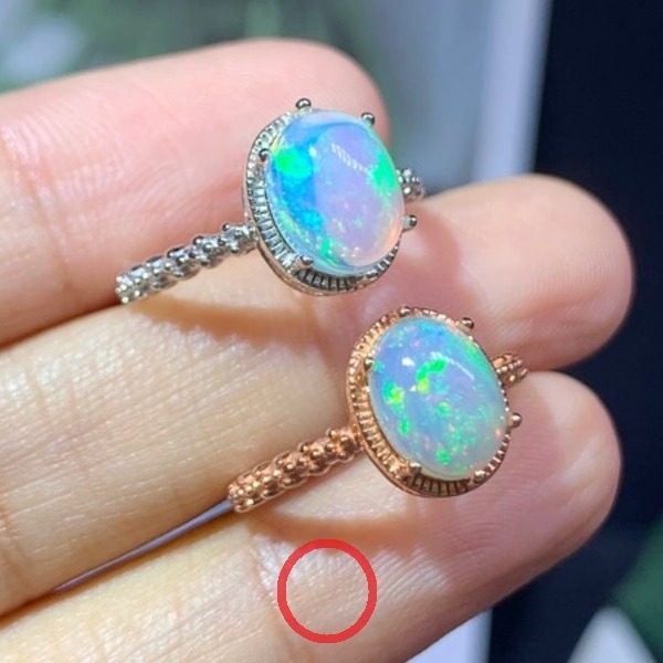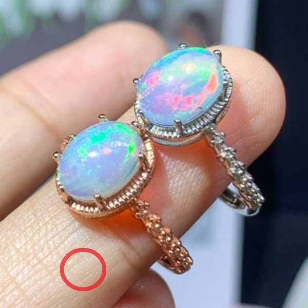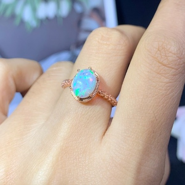 ナチュラルオパール結婚指輪、7x9mm、925スターリングシルバー、鑑別付き、女性用、