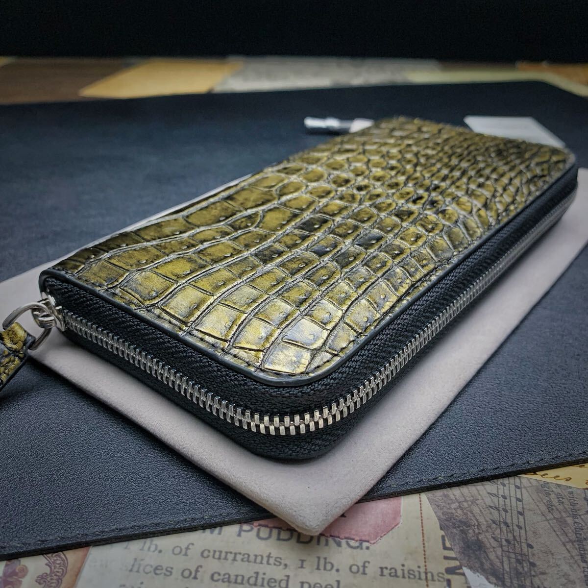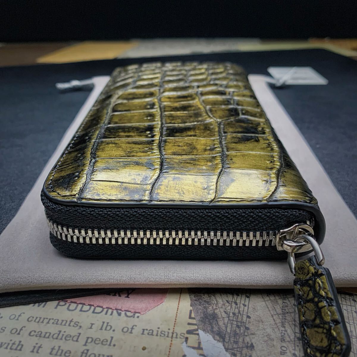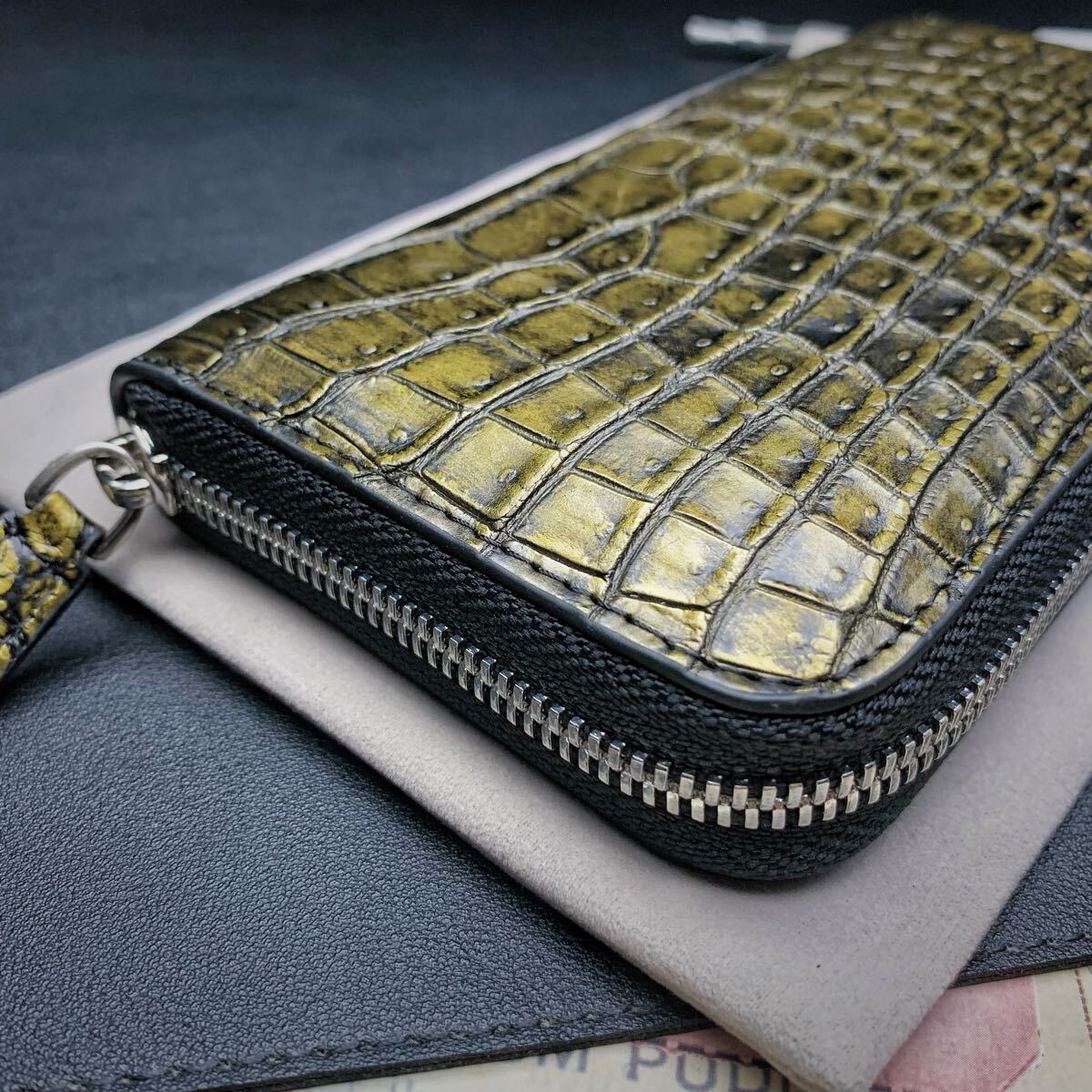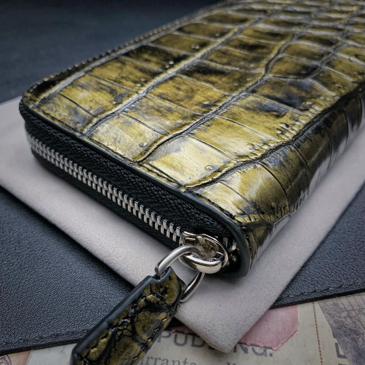 ・クロコダイルと呼ばれている品種のワニ革は人気が高く、独特の模様と凹凸が魅力で、高級ブランド品を中心にクロコダイルが多く使われています。今回はワニ革の代表格である『シャムクロコダイル』のセンターカット腹革のラウンドファスナー財布を出品します。