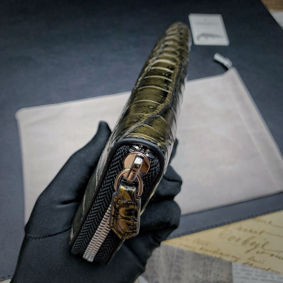 ・天然素材のクロコダイル革を使用しデザインが異なり一点物になる為、全て実物撮影しており、写真が実際にお届けする商品です。