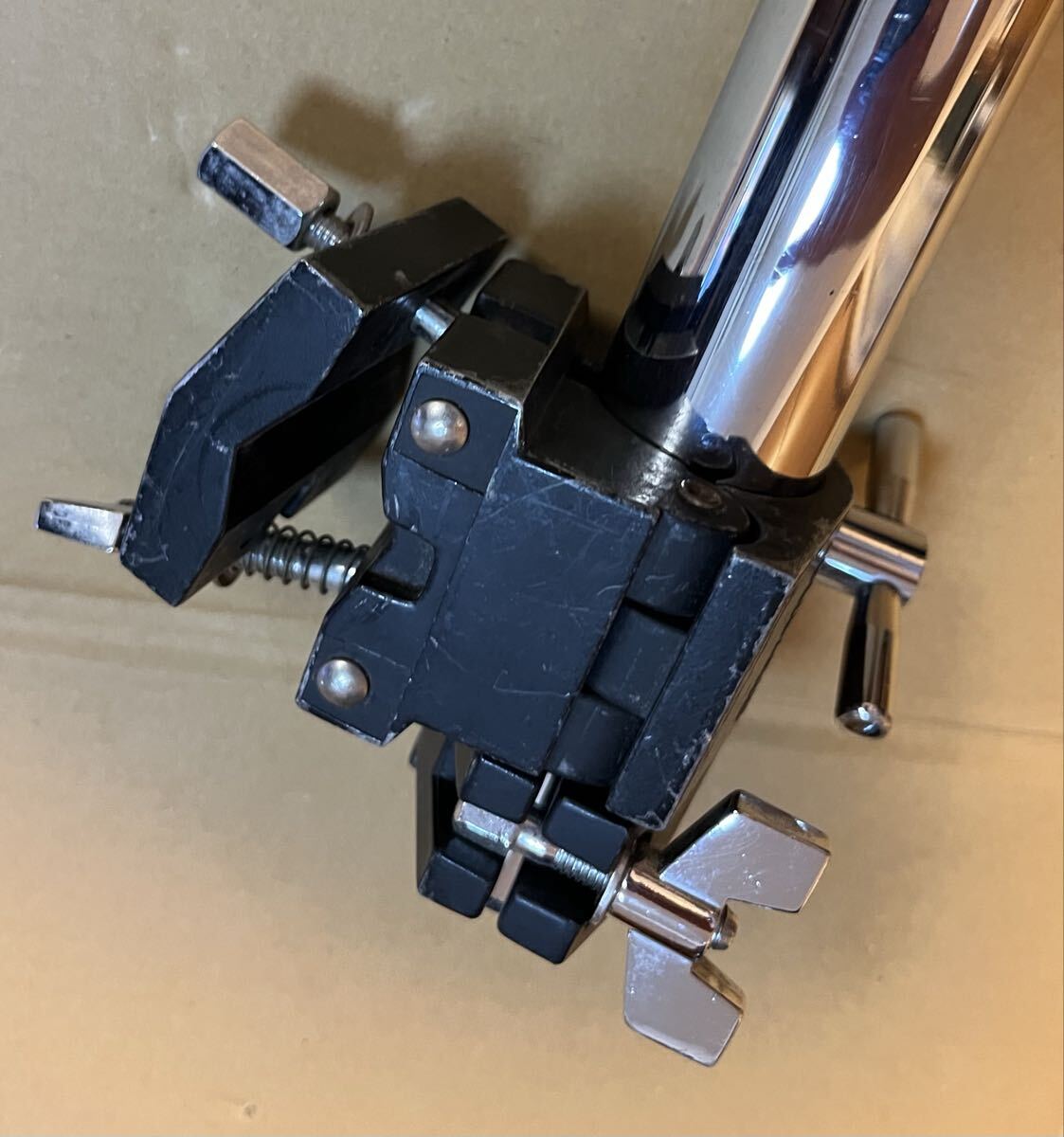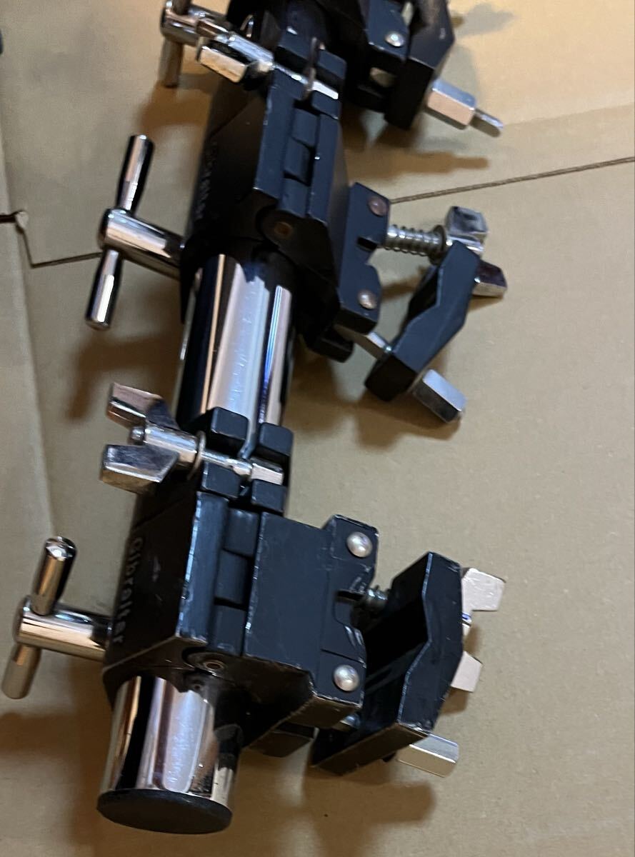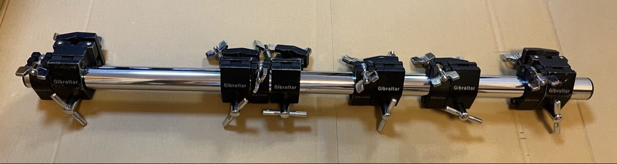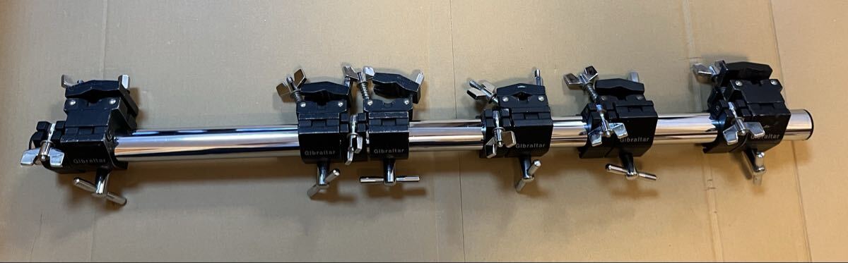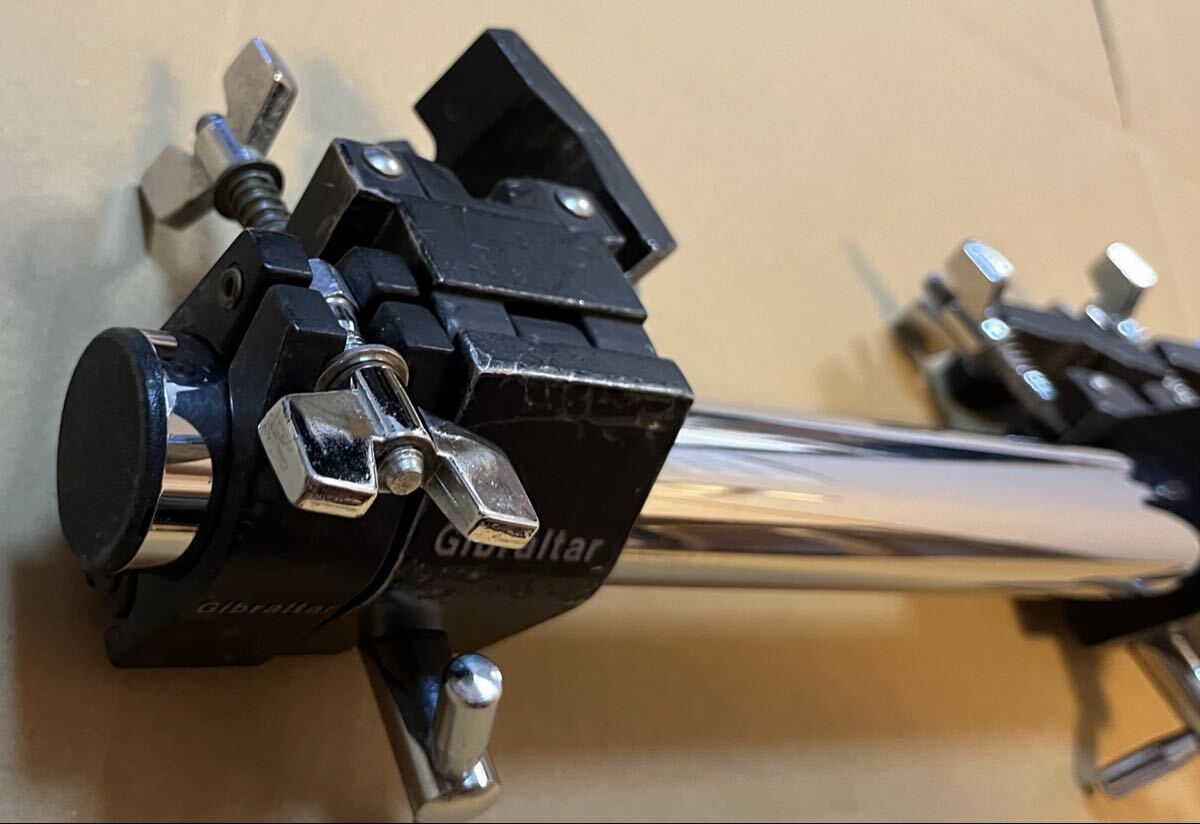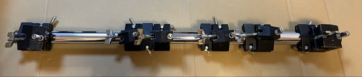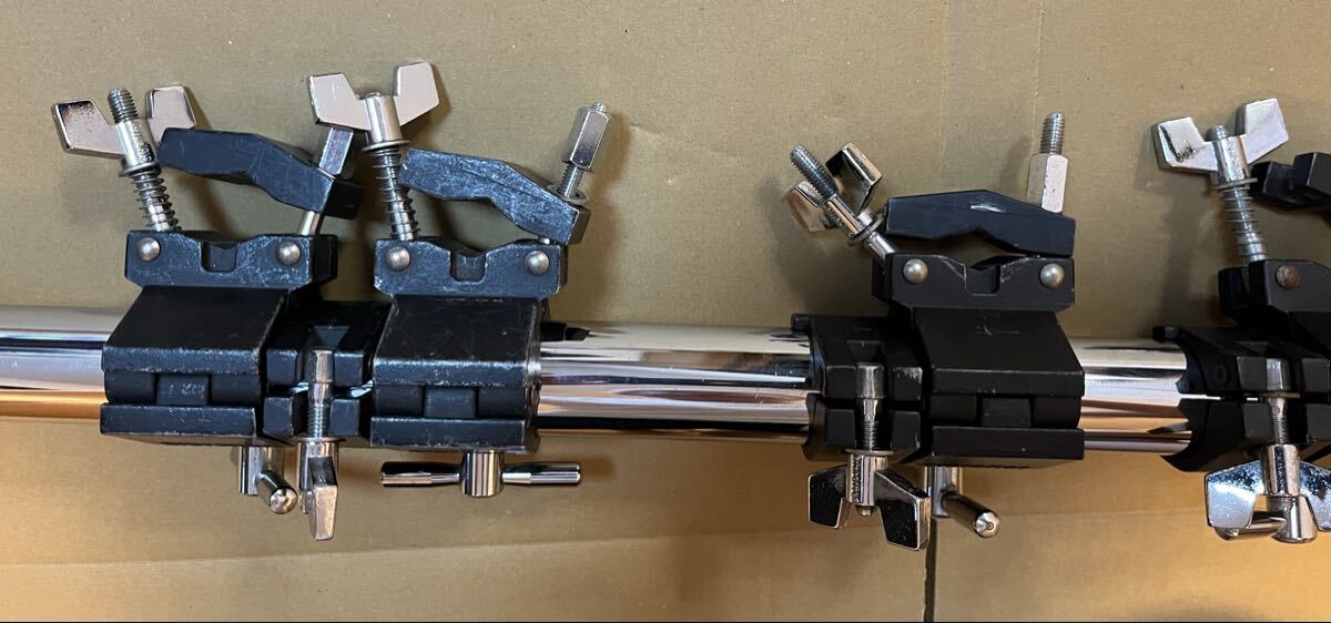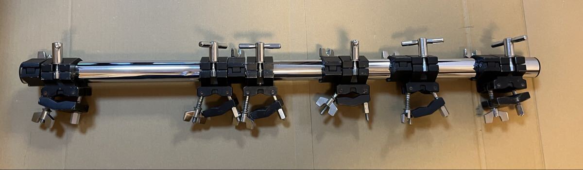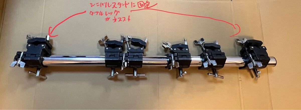 4個のクランプと5個のメモリークランプをつけておきます。ここにヤマハのショートシンバルスタンドを追加したり、タムクランプをつけたりしました。