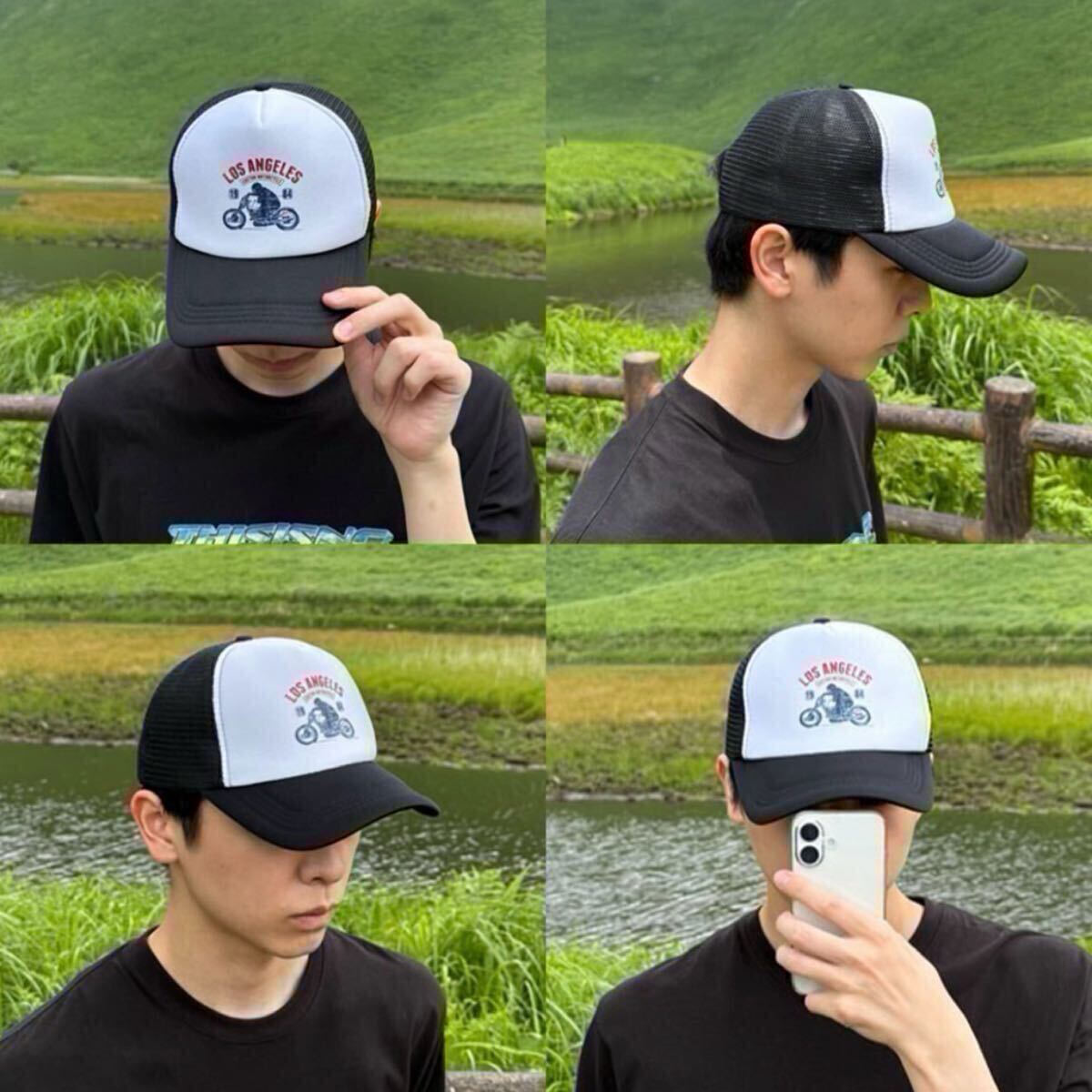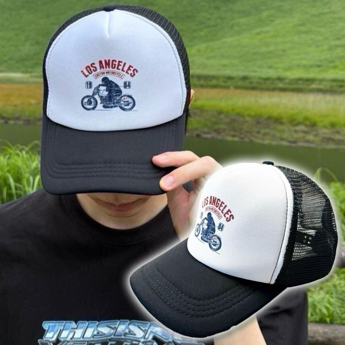 「LOS ANGELES」×バイクデザインがクールな【メッシュキャップ】です。