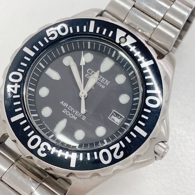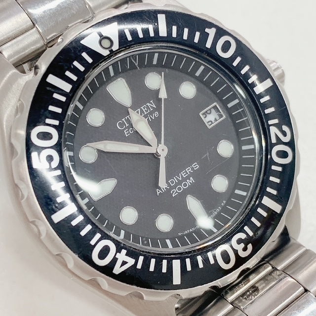 動作品 シチズン CITIZEN E168-T005446 GN-4W-UL エアダイバーズ AIR DIVERS メンズ 腕時計 エコドライブ ソーラー デイト 現状品
