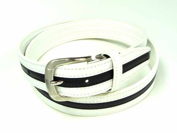 ホワイト×ブラックカラーの2トーンカラーPUレザーベルト