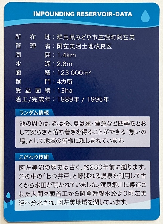 | かんがい施設カード 阿左美沼 【群馬県みどり市】 | |