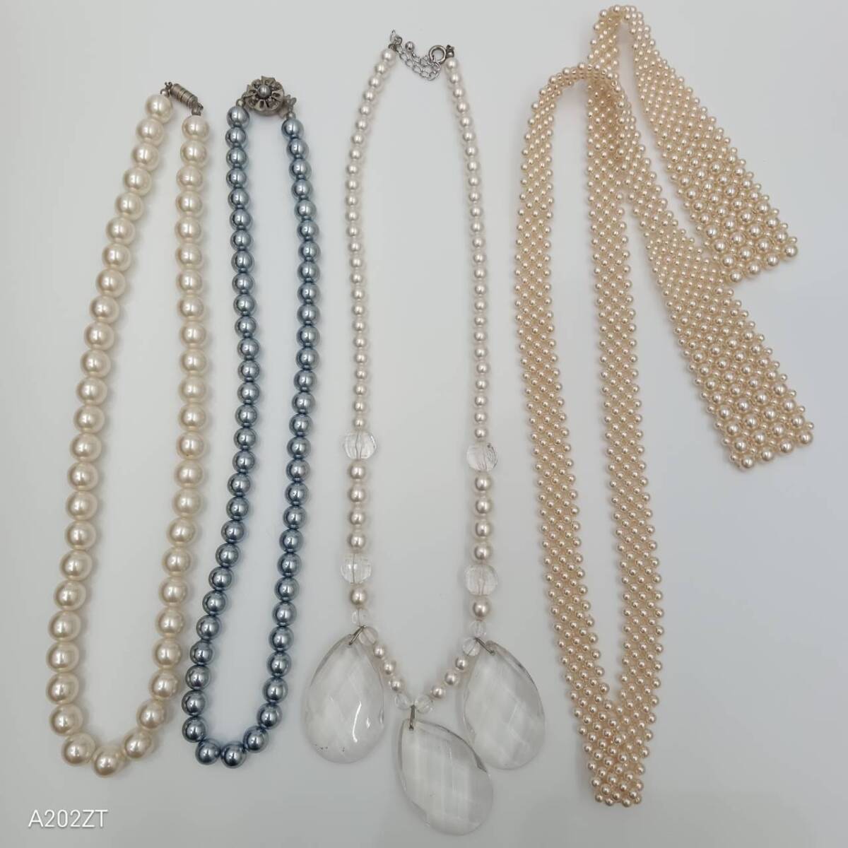 | #1267-A パール 真珠 フェイクパール ネックレス イミテーション カラーパール ラインストーン 他 シルバー まとめ セット 中古品 | |||