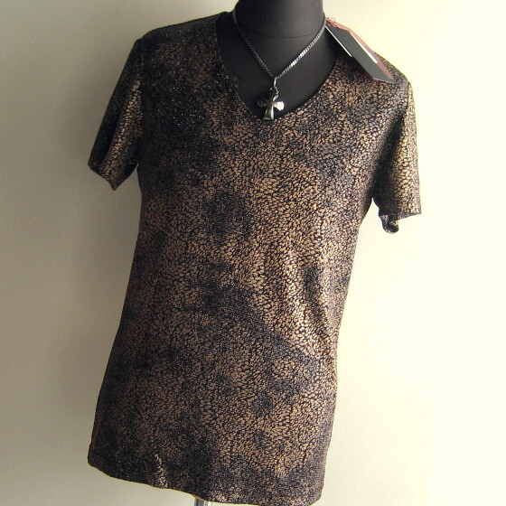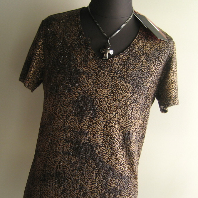 1.5万 新品 M トルネードマートアニマルMIXラメ半袖カットソー イタリア生地 ゴールド 送料無料 702