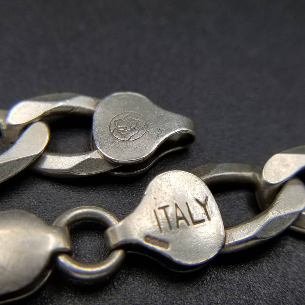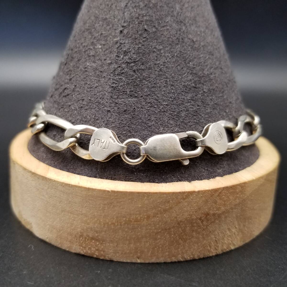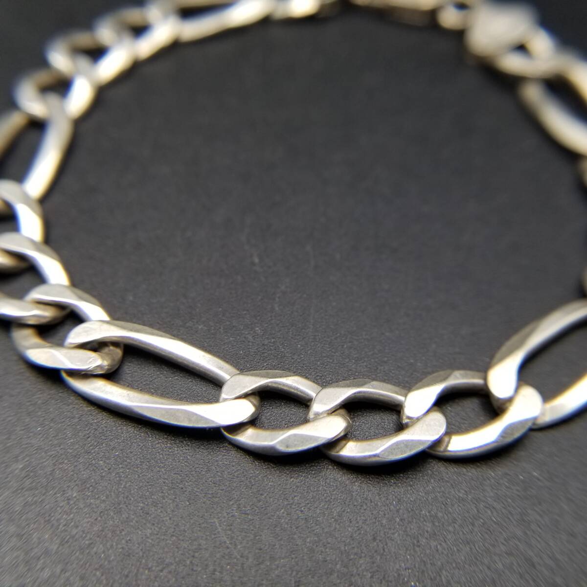 イタリア製 フィガロチェーン 925 シルバー ヴィンテージ ブレスレット 銀 スタイリッシュ メンズ 英国 Sheffield ホールマーク Y23-Z