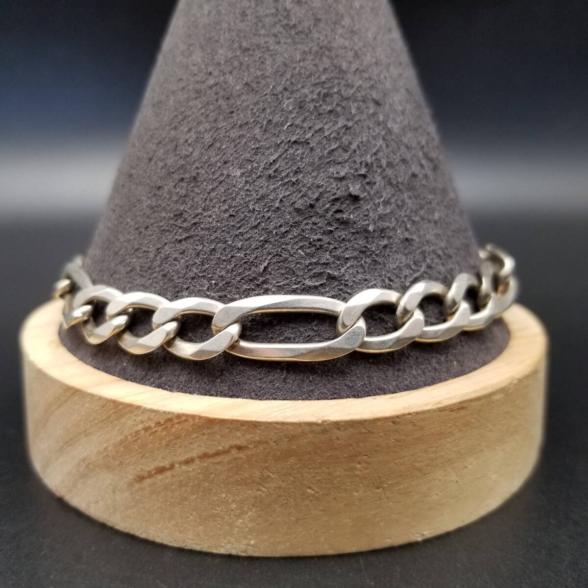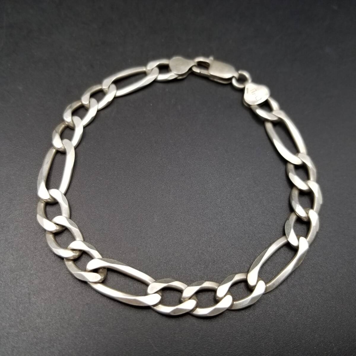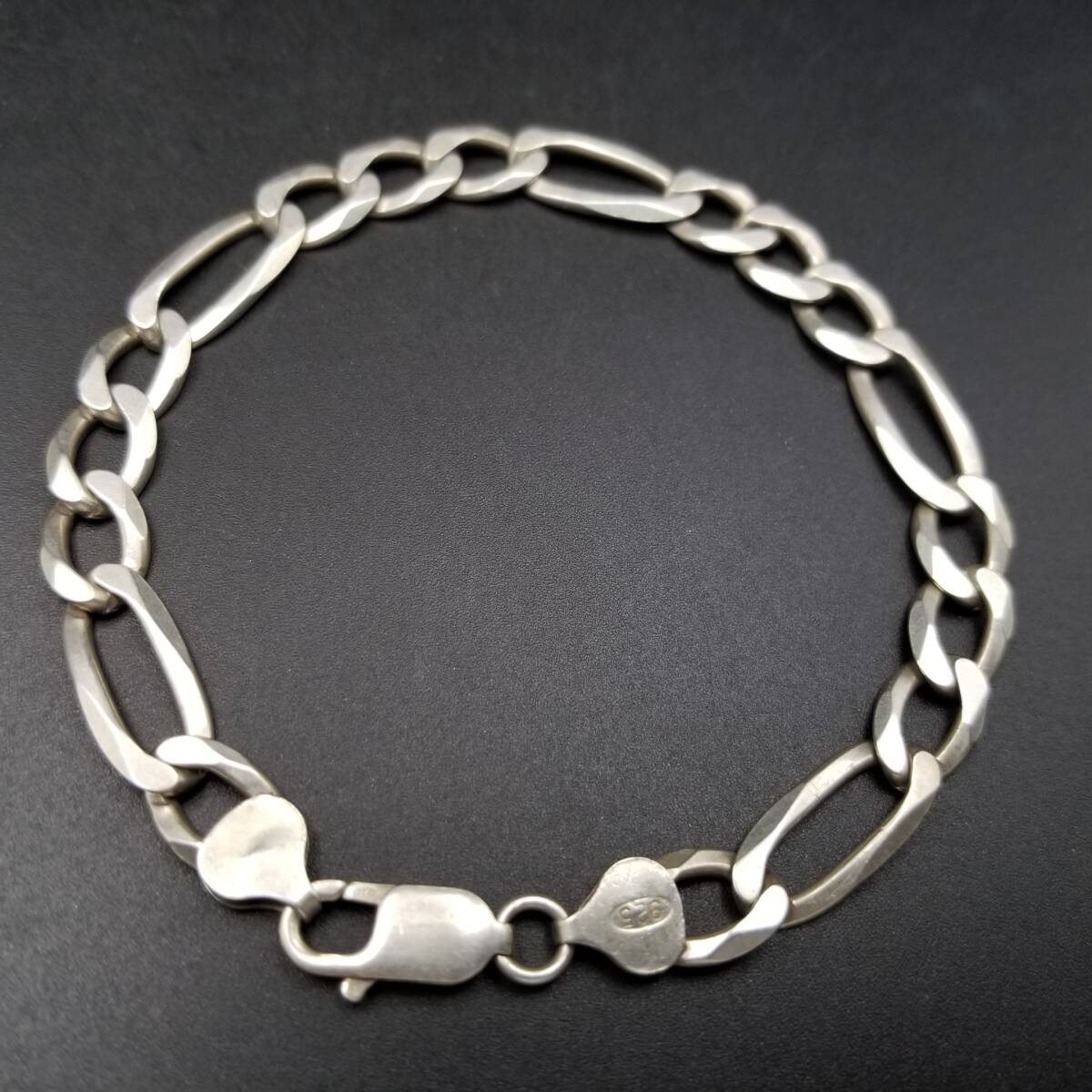 イタリア製 フィガロチェーン 925 シルバー ヴィンテージ ブレスレット 銀 スタイリッシュ メンズ 英国 Sheffield ホールマーク Y23-Z