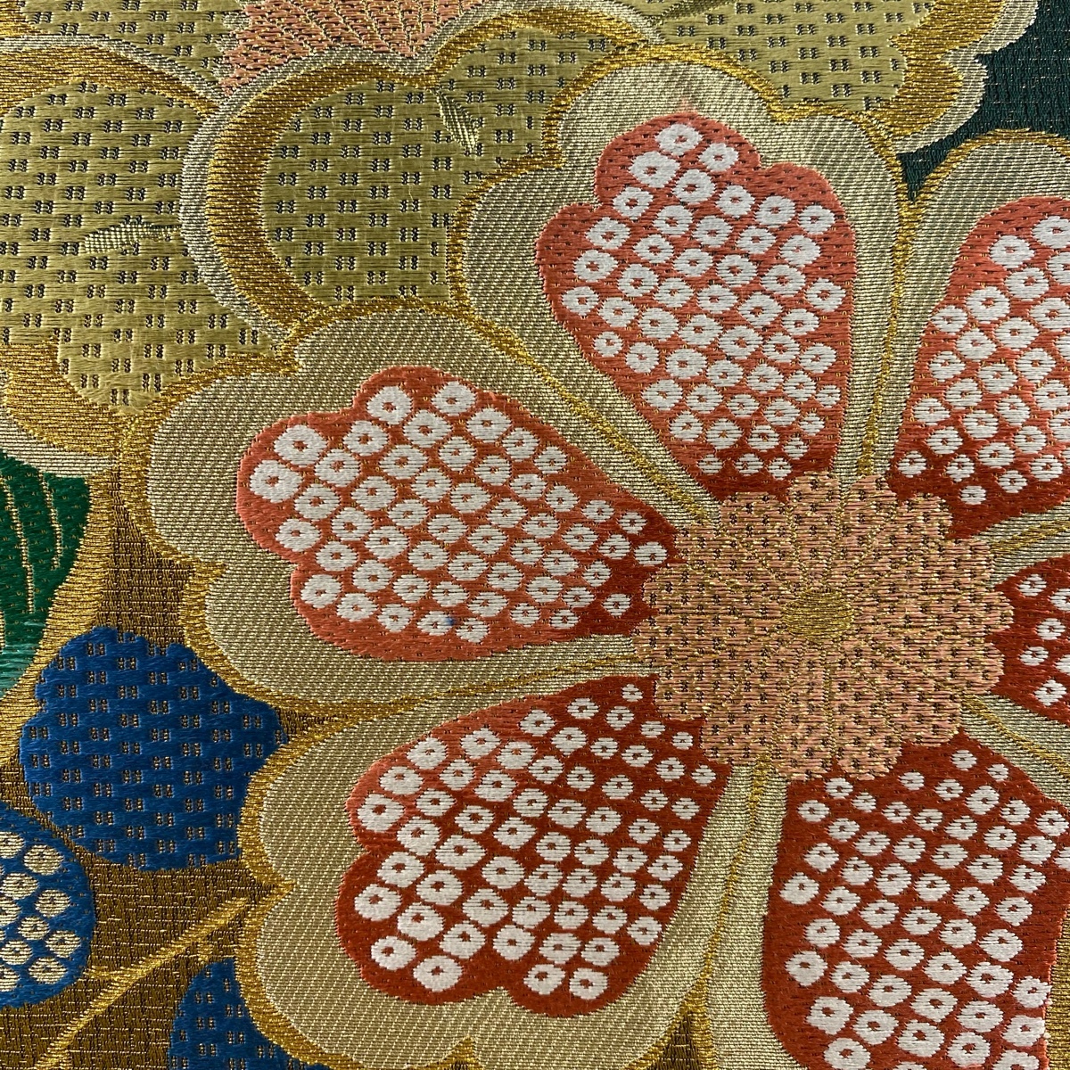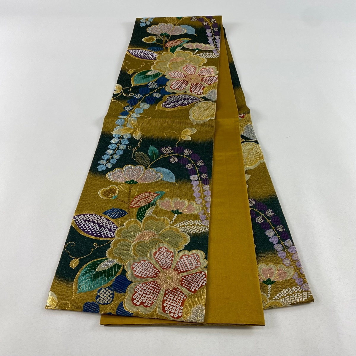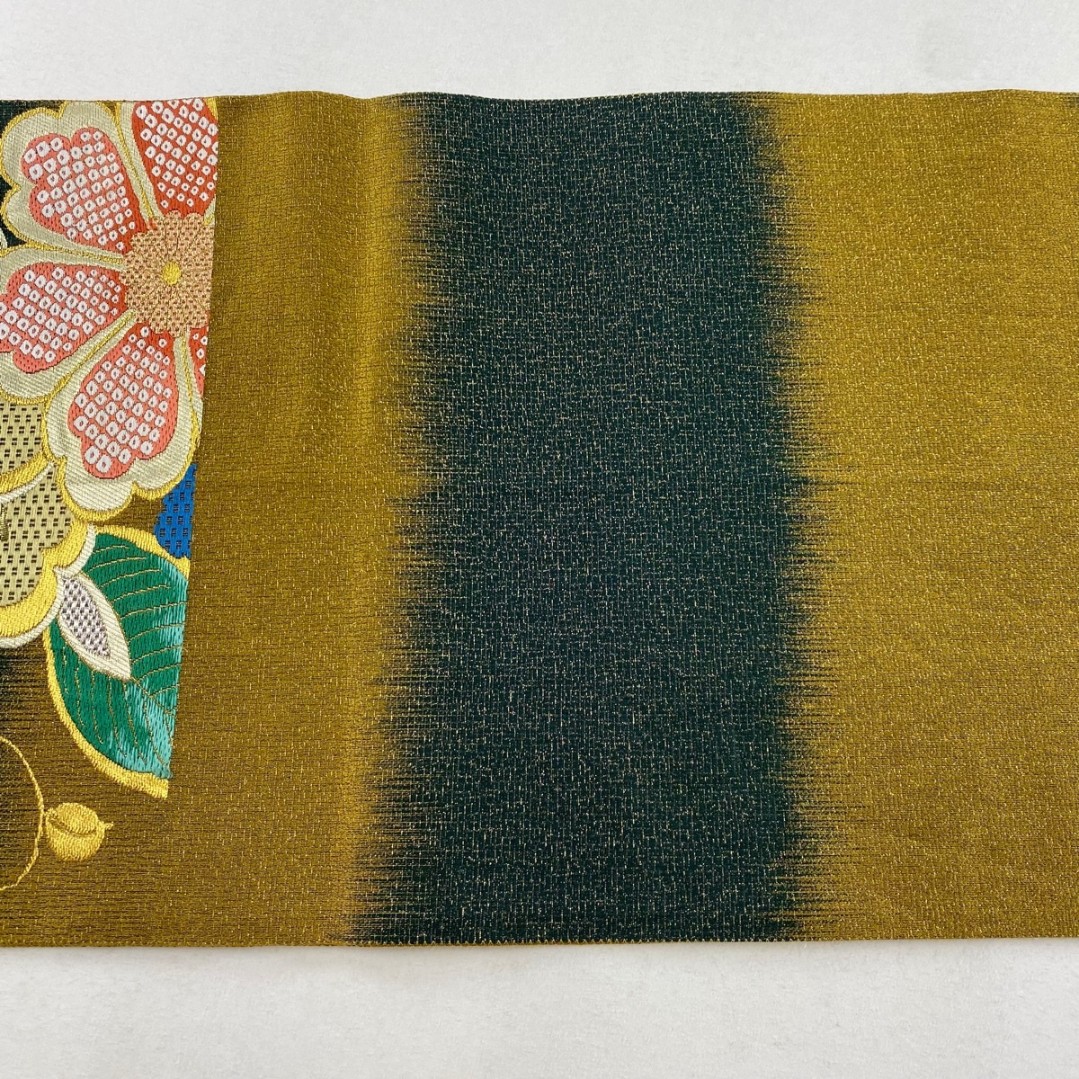 | 袋帯 秀品 桜 疋田柄 刺繍 金銀糸 山吹茶色 六通 正絹 【中古】 |
