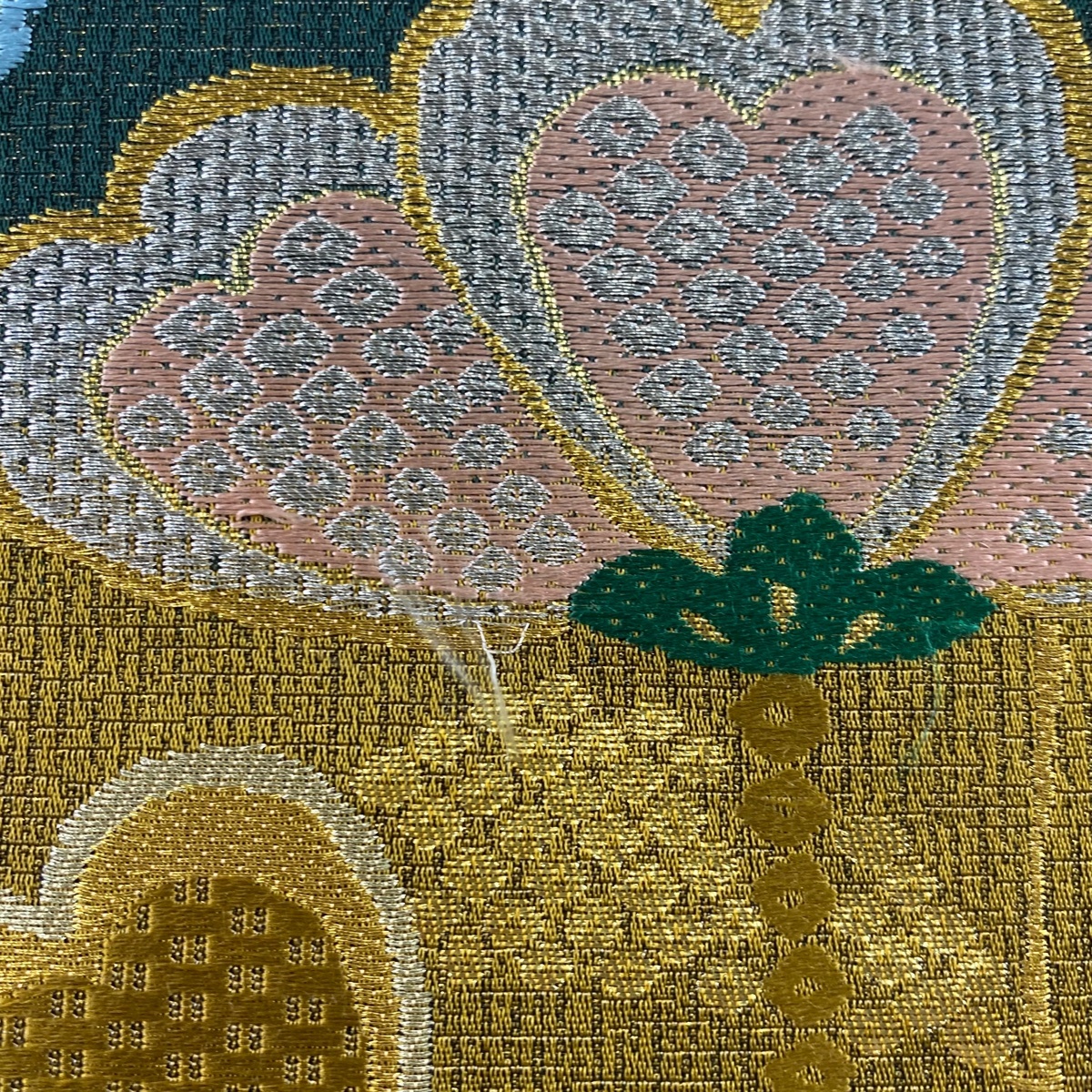 | おめでたい席に相応しい意匠の袋帯でございます。 格式高いお席にもお使いいただけますので、お見逃しのないようお願いいたします。 締め跡がございます。 表地所々に刺繍糸のほつれがございます。 ※締め跡がお太鼓を含む帯全体にございます。 ※締め跡がお太鼓を含む裏地全体にございます。 リユース品としては良い状態で、まだまだご活用頂けると思われます。 ※なお、厳しく商品の状態確認を行っておりますが、記載の汚れ以外にも見落とし箇所がある可能性がある旨ご了承いただけますと幸いです。 沢山の商品の中からご覧いただき誠にありがとうございます。 |