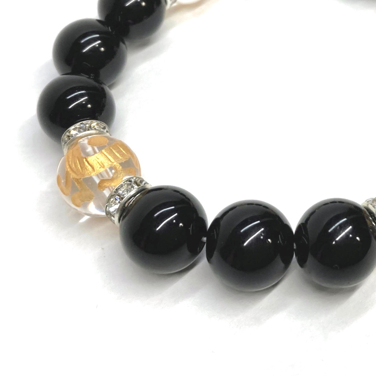 四神獣金彫水晶×オニキス 12mm パワーストーン ブレスレット天然石 青龍 白虎 玄武 朱雀 運気上昇 お守り 金運 健康運 四神獸 四神相応 S