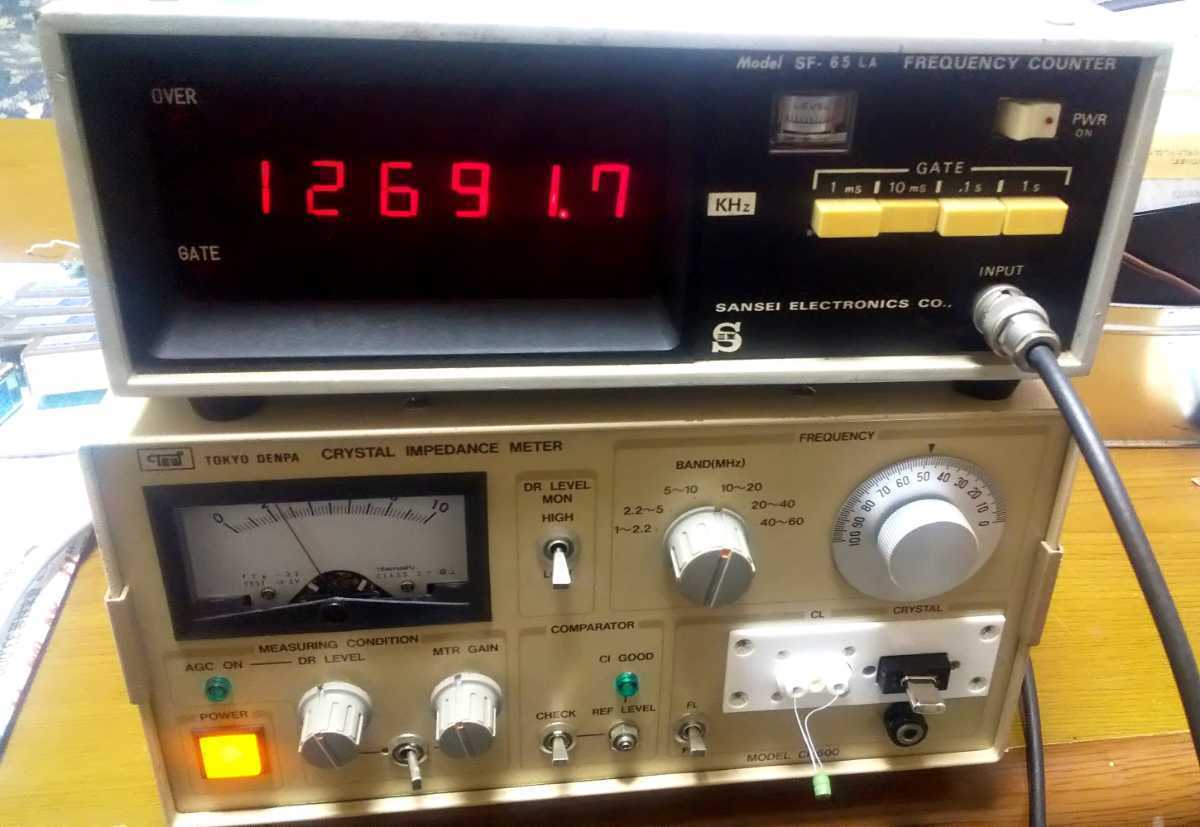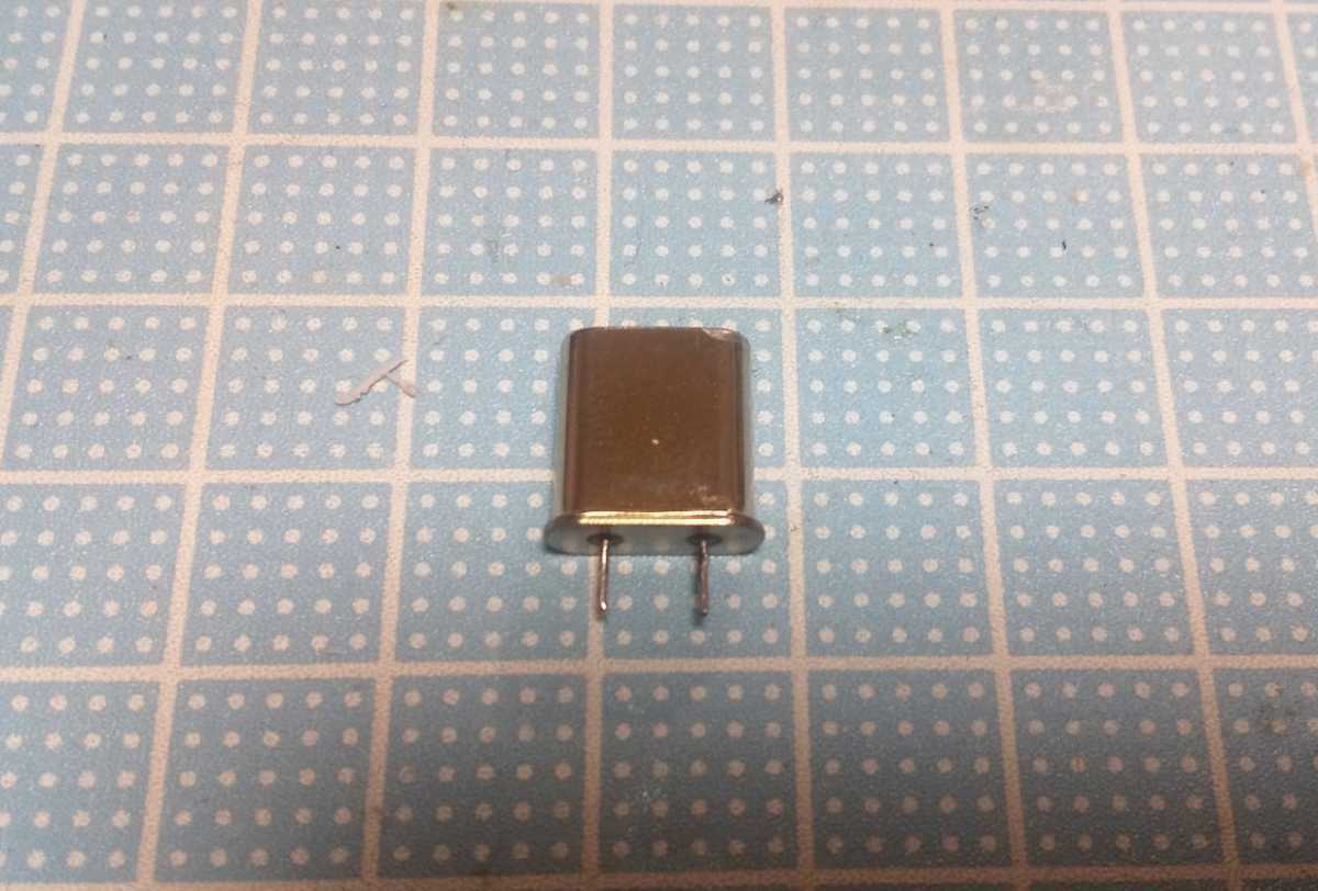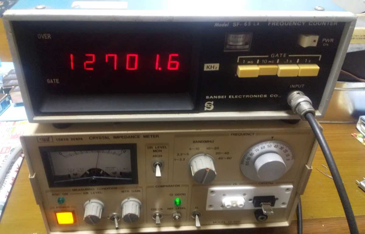 キャリア用 12.700MHz付近の水晶を付けますが、画6の様に少々Fが高いです。 画7の様に Lを着けると充分下がりました。おまけなので F表記ありません。