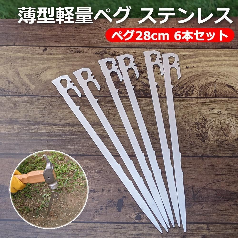 ペグ 薄型 軽量 コンパクト ステンレス製 テントペグ タープペグ ステーク 28cm 6本セット キャンプ アウトドア