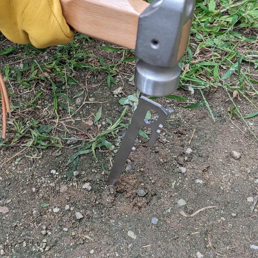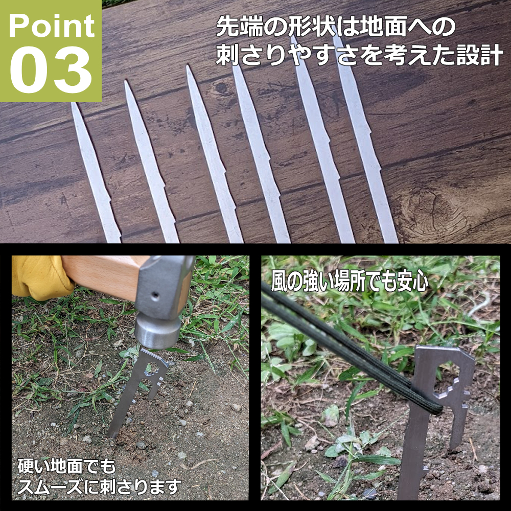 ◆【打ち込みやすい形状】先端の形状は地面への刺さりやすさを考えて設計されており、硬い地面でもスムーズに打ち込むことが出来ます